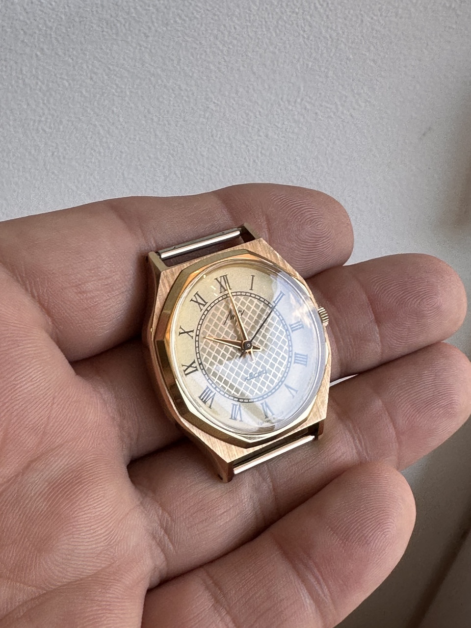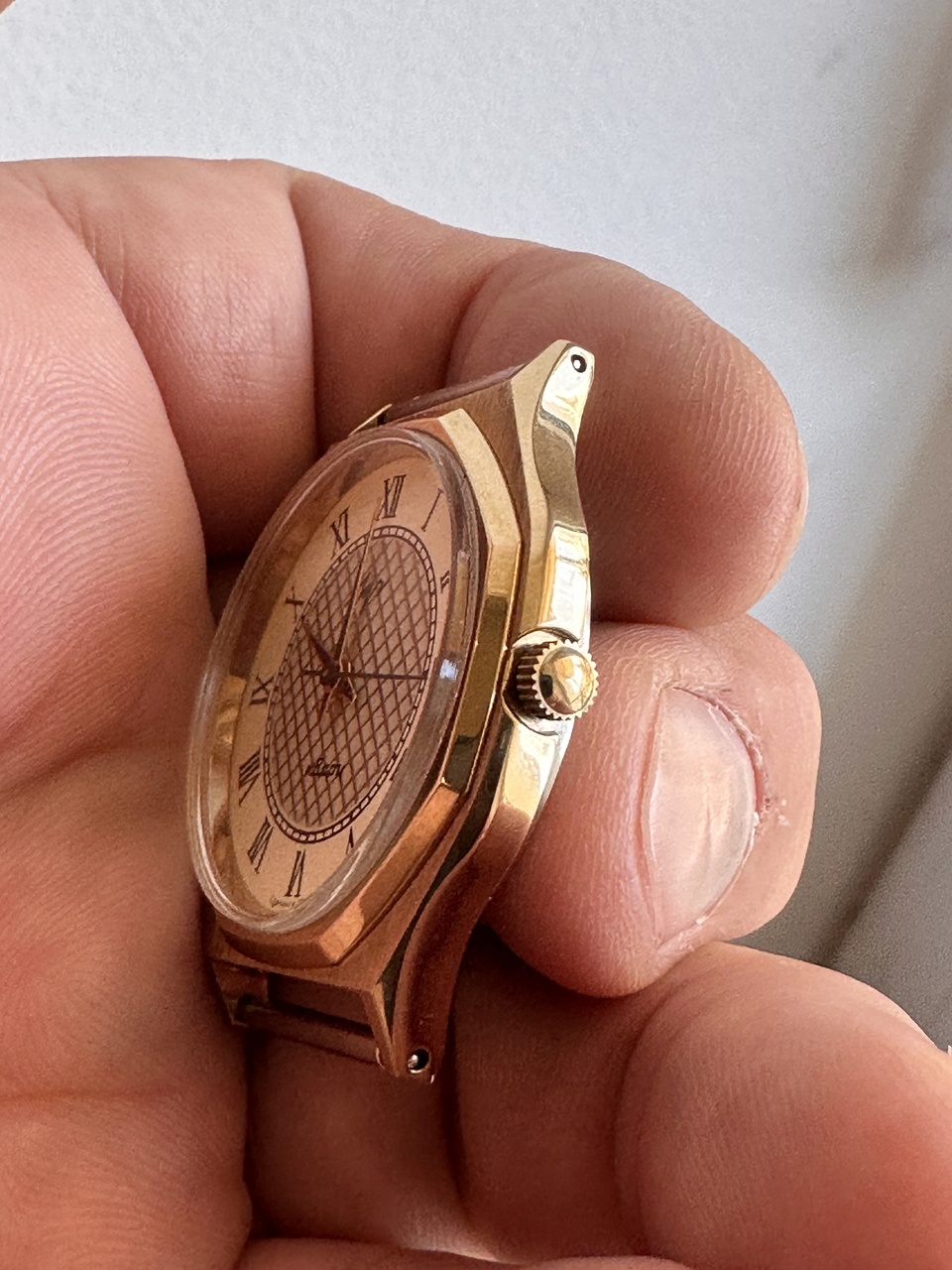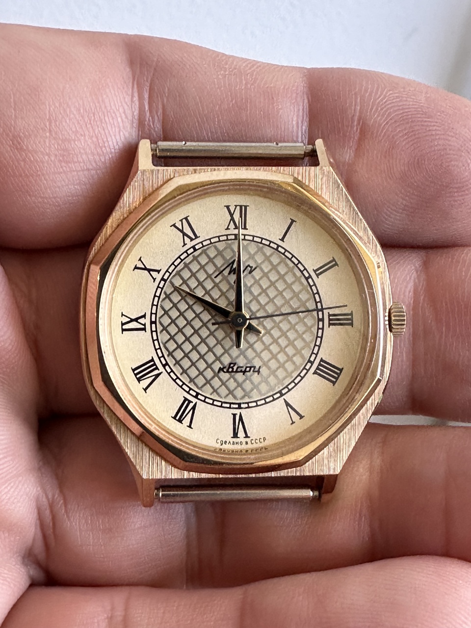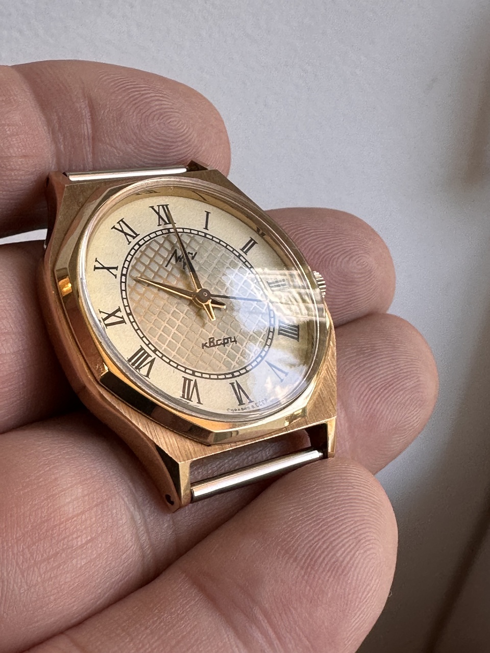 Новые часы кварц Луч с хранения, позолота, СССР.