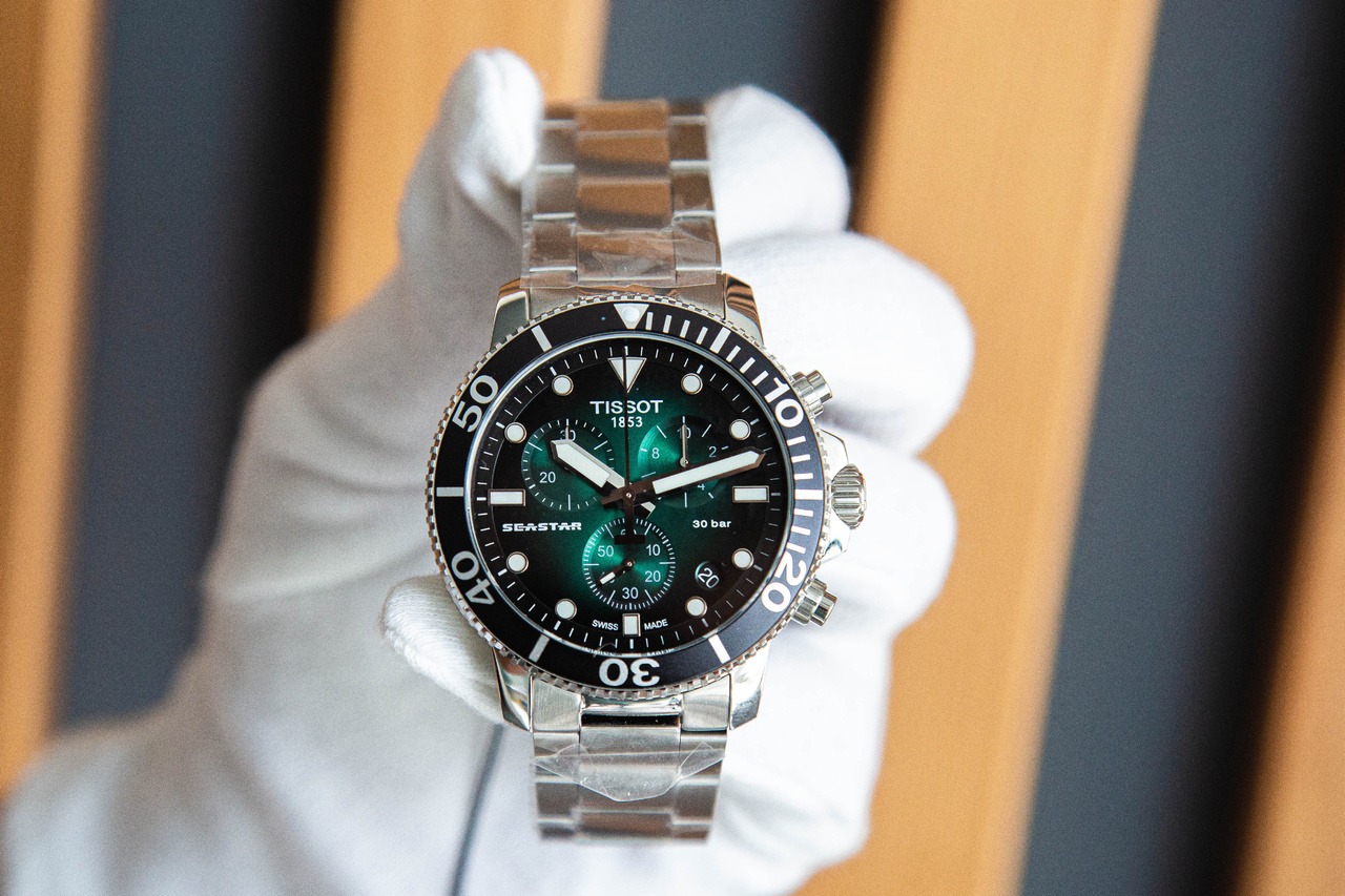 TISSOT Seastar Quartz Chrono T1204171109101. Кварцевый хрон / Браслет / Черно-зеленый цифер / d=45mm