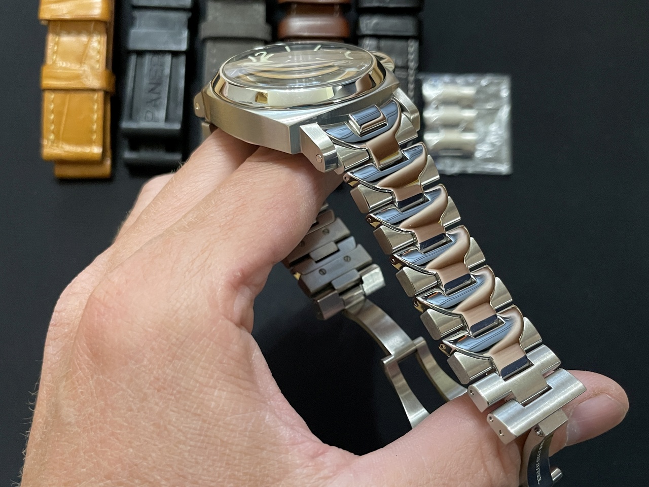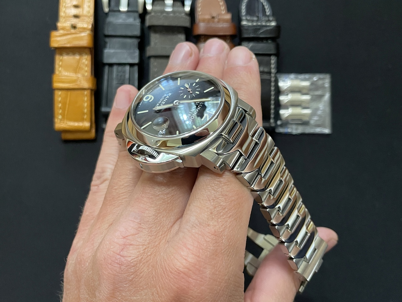 Одна из последних партий данной модели, серия J, год производства 2007. Редкие панераи на браслете в классическом корпусе Luminor, идеального размера - брутальные за счет браслета, комфортные для небольших запястий за счет диаметра 40 мм.