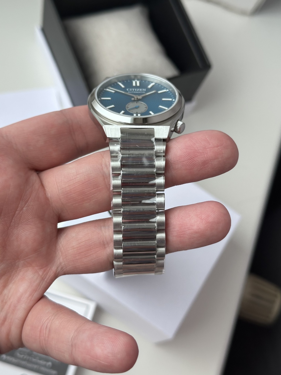CITIZEN TSUYOSA NEW! NK5010-51L. ГОЛУБОЙ ЦИФЕРБЛАТ. САПФИРОВОЕ СТЕКЛО. ОБНОВЛЁННЫЙ БРАСЛЕТ И МЕХАНИЗМ. ГИЛЬОШЕ ЦИФЕРБЛАТ. УЗОР В ВИДЕ ПАРИЖСКИХ ГВОЗДЕЙ, СУПЕР-ПРАЙС!