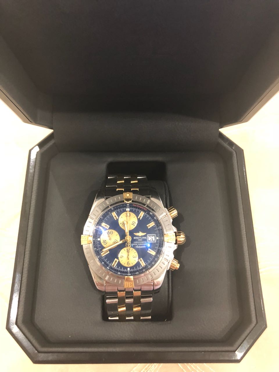 | breitling chronomat evolution, gold/steel 43.7mm b13356 |