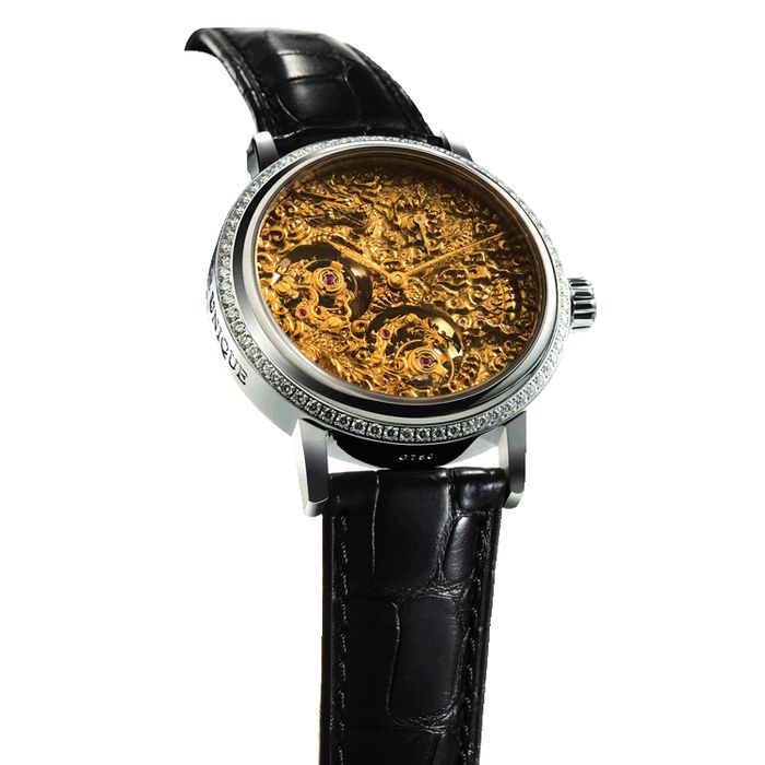 Beijing Watch Factory тоже один из динозавров китайской часовой промышленности – компания была основана в 1958 году. Ее модели часто декорированы эмалью и тончайшими гравировками, причем ими украшаются не только циферблаты и платины с мостами, а также еще и стрелки. Материалы: сталь, золото, платина. Самые простые турбийоны компания продает примерно за $1,800. А вот ряд особо выдающихся моделей: