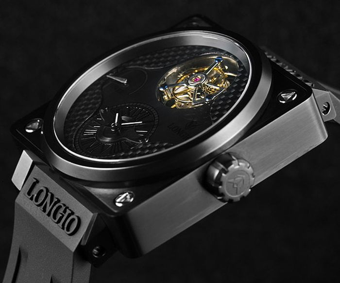 Longio Watch Co. Похоже на то, что ее инженеры каждую пятницу пересматривают «Трансформеров». Самая запоминающаяся модель – Telamon. В греческой мифологии герой Теламон — сын Эака и Эндеиды, брат Пелея, мифический предок Мильтиада (что бы это ни значило). А у китайцев – массивнейшие автоматические часы для дайвинга, оснащенные минутным турбийоном. Их водозащита составляет 1000 метров, запас хода — 65 часов. В коллекции компании есть еще турбийоны Asmara с дизайном в стиле упомянутых выше «Трансформеров», откровенно подворванный у Bell&Ross Aviator и другие, более классические модели. Часы для дайвинга стоят около $8,000. Механизмы выточены на станках Liaoning Watch Factory.