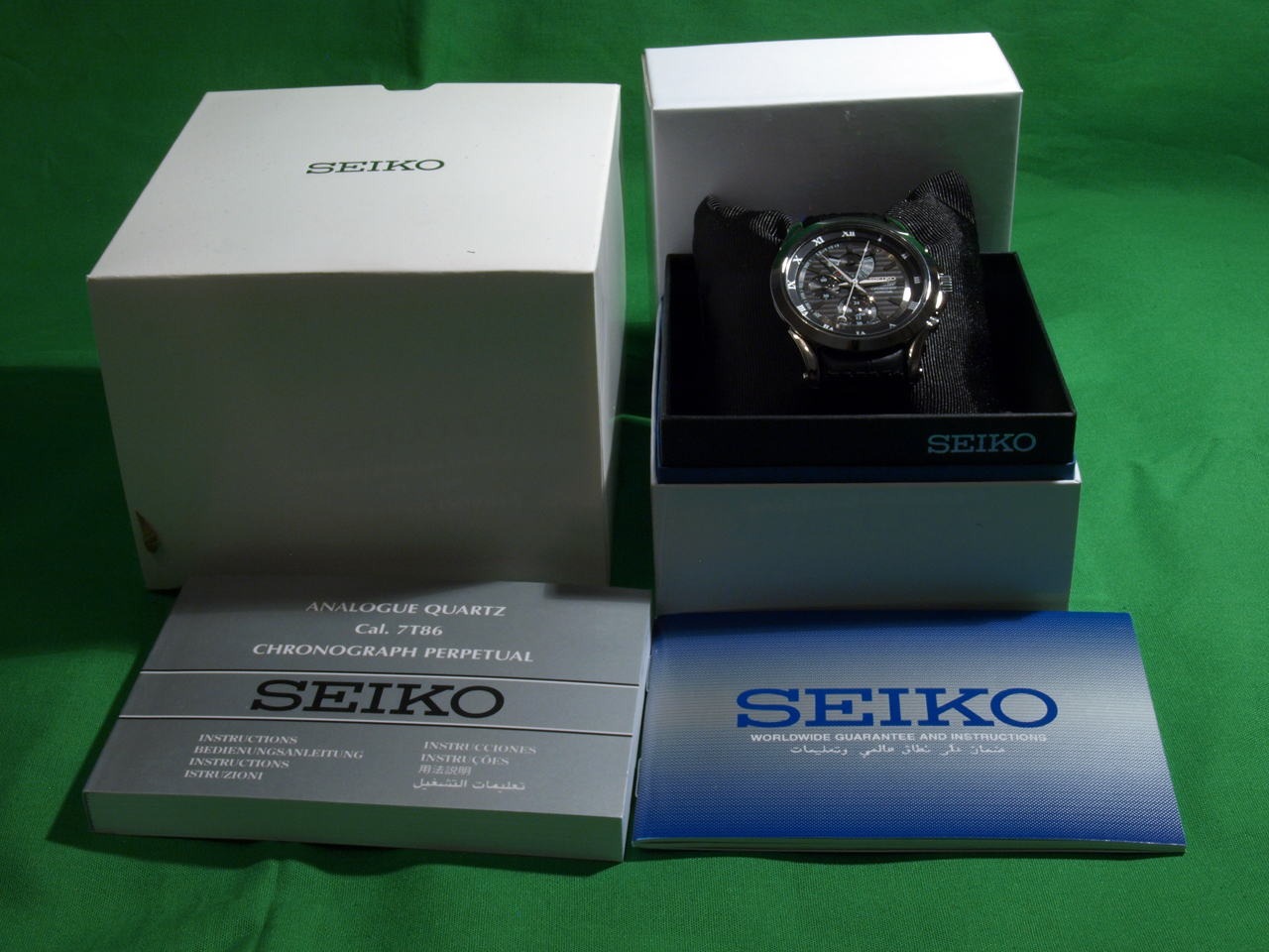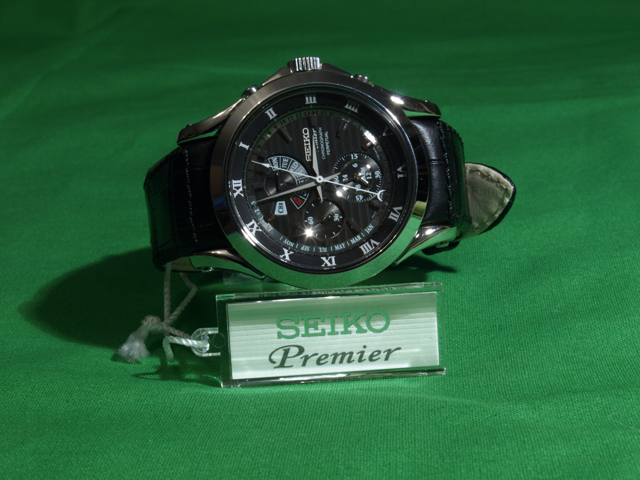 Представляю Вашему вниманию мужской хронограф Seiko Premier Chronograph Perpetual SPC053P1; хронограф с вечным календарем, размещенный в стальном корпусе, дополненный фирменным черным кожаным ремешком - идеальный вариант как для костюма, так и для повседневной одежды! Часы новые, в полном комплекте, включая международную гарантию, действительную также и в России до августа 2012 года.