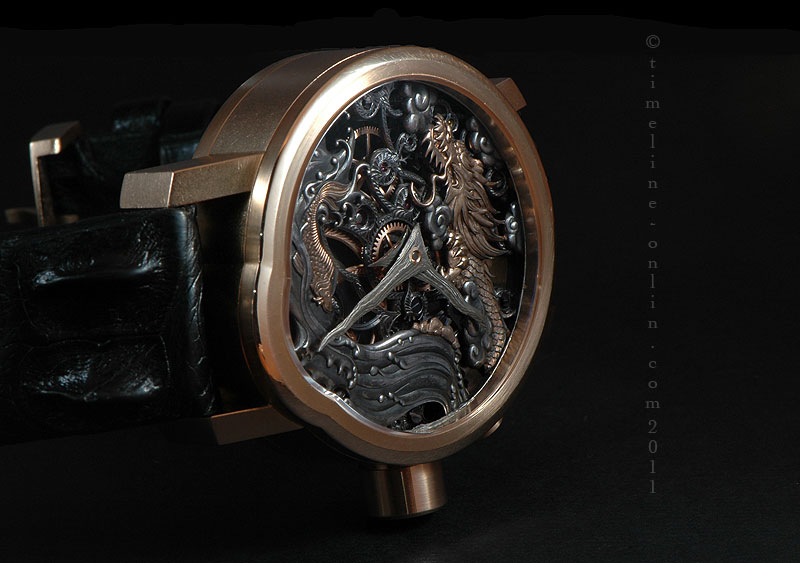 Модель Dragon Gate Legend ("Легенда драконовых ворот") от швейцарской часовой компании Cornelius & Cie отличается великолепной художественной гравировкой, выполненной выдающимся голландским мастером-гравером Kees Engelbarts, который, кстати, является одним из двух соучредителей бренда.
