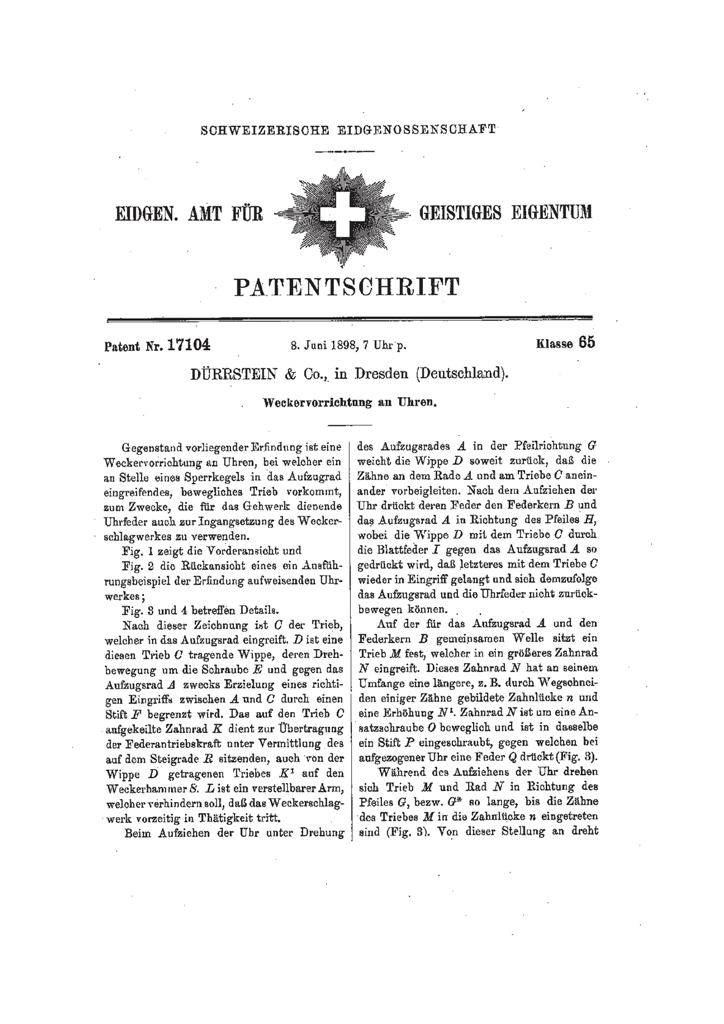 P.S. Швейцарский патент выдан Дюрштайну тем же годом.