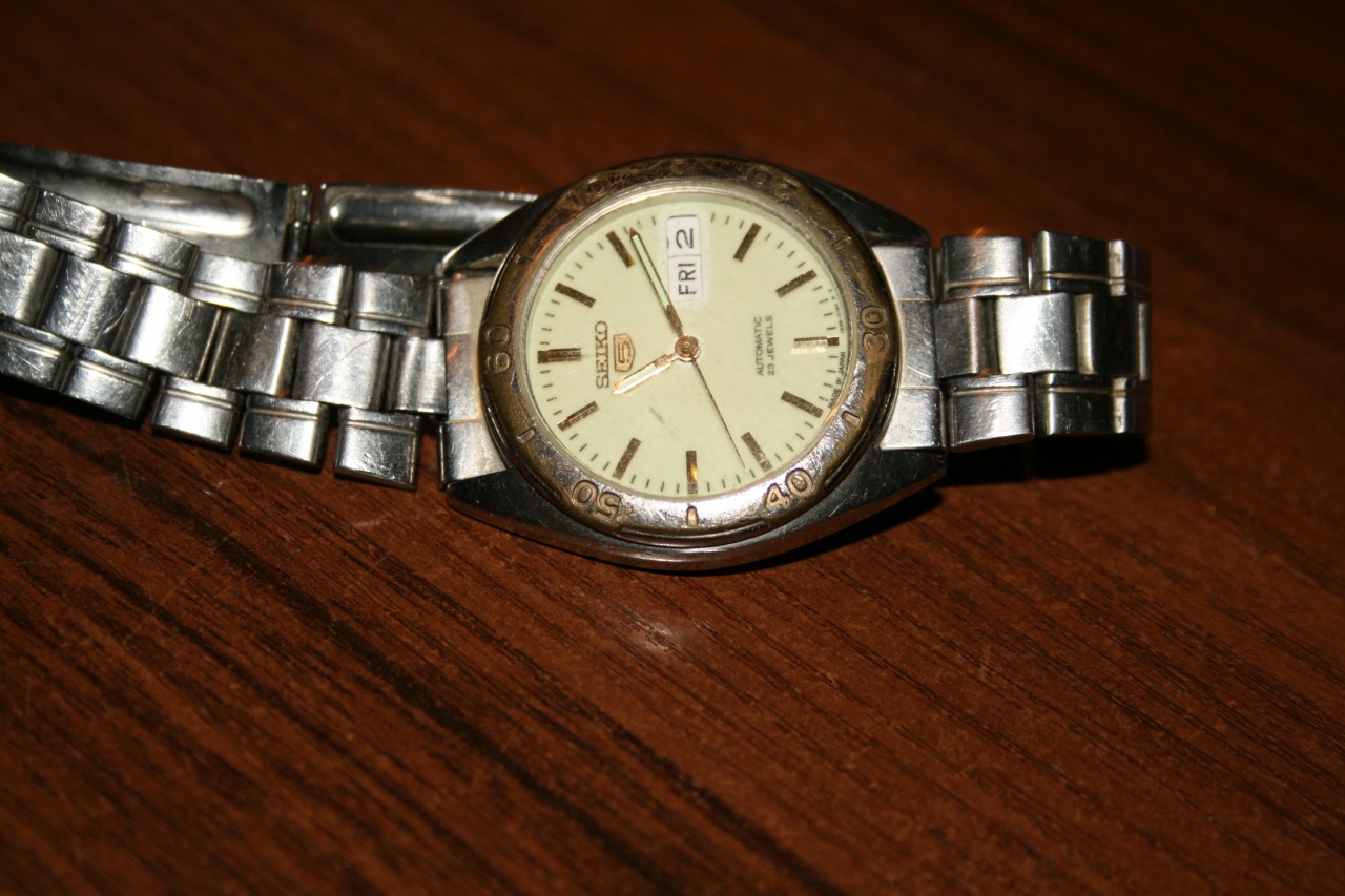 Были: Советские в корпусе из красной пластмассы (в начальной школе), Електроника, Romanson NL0225RM Есть:Seiko 5, Seiko chronograph SNDC89P1, Заря 2009.1