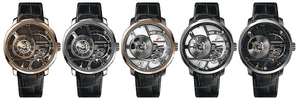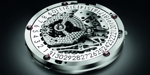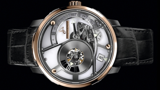 Оригинальный способ отображения времени заключается в применении двойного механизма со скачущим указателем часов и ретроградным указателем минут. Секундная стрелка находится на малом циферблате в положении "5 часов". Интригующие тяги, напоминающие, как особо подчеркивает Рено де Ретц, об эпохе паровозов, приводят в движение скачущий диск часов. Когда минутная стрелка достигает отметки 60, под воздействием центральной спиральной пружины одна из тяг взводит небольшую пружину с инерционным грузом, который, в свою очередь, поворачивает диск указателя часов. Баланс часов совершает 21 600 полуколебаний в час, а запас хода составляет 40 часов. Задняя крышка с сапфировым стеклом на винтах позволяет следить за работой чудо-механизма.