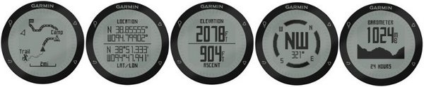 Часы-навигатор Garmin fēnix оборудованы на первый взгляд простеньким невыразительным черно-белым жидкокристаллическим экраном размером 1,2-дюйма разрешением 70х70 рх. Для темного времени суток и работы при малой освещенности имеется подсветка. Компания Garmin установила в свое детище целую кучу различных полезных примочек, которые позволят вам с комфортом путешествовать по заданному маршруту и быть на шах впереди. Так в данном гаджете вы увидите: цифровой компас, барометр, альтиметр, температурный датчик и естественно модуль GPS.