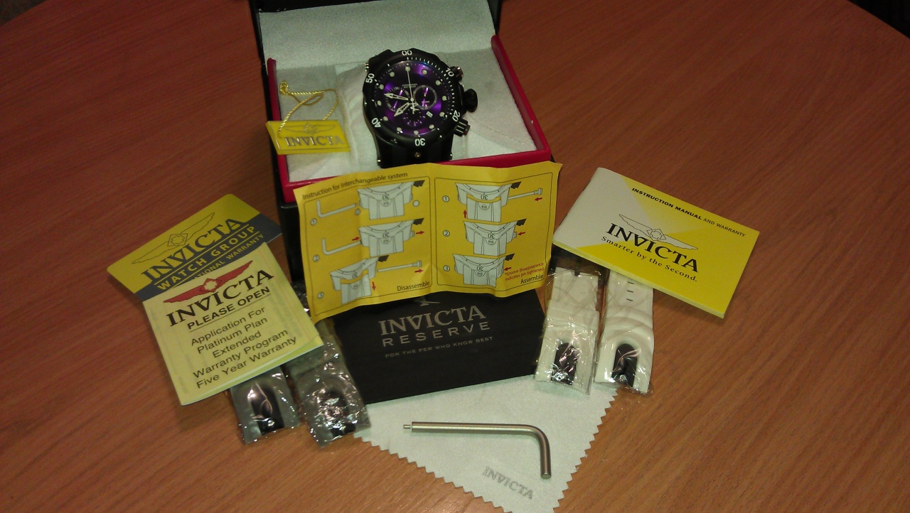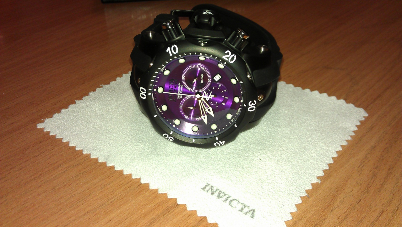 Доброго времени суток всем! Вот стал обладателем двух моделей часов от Invicta! Первая модель INVICTA RESERVE EXCURSION 1881( http://www.ebay.com/itm/INVICTA-MENS...item2c677d2d22 ). Была приобретена за 235$ с доставкой из-за бугра! Модель интересная, тяжелая (370 грамм), но не для точного замера времени))) Механизм ETA G10.211.NZ кварцевый с хронографом! Единственный минус в них, то что секундная стрелка не попадает на деления циферблата, брак это или нет, затрудняюсь сказать! Были подарены Вторая моделька, которая безумно нравится, это Invicta Reserve Venom Ocean Quest II Chronograph 11157 Purple Dial ( http://www.ebay.com/itm/Invicta-Rese...item53f02f69ed ). Приобрел за 355$ c доставкой! Доволен безумно, но как-то запустил хронограф на сутки и за это время он отстал от основного времени на 4 секунды, если кто разбирается, скажите почему) Механизм Ronda 5040.D! Часы массивные, толстенные, но привык и кажутся вполне обычными, для меня, но не для окружающих))) Уже привык к фразе: "Вот это будильник..."))) Приятное на ощупь черное матовое покрытие корпуса, на сколько устойчивое, покажет время! Пару раз цеплял часами двери и стены, без последствий, по крайней мере для часов))) Да, запястье у меня 19 см! Хочу для данной модели приобрести стальной браслет оригинальный, черного цвета, но не могу найти на eBay, а наши барыги просят от 6000-7000 рублей, больше половины стоимости часов! Кто может предложить браслет, пишите! Я в свою очередь продаю два каучуковых браслета для Venom (26 mm), серого и белого цвета, все в целлофане, обращайтесь! Хочу еще приобрести INVICTA RESERVE BOLT 6940 ( http://www.ebay.com/itm/INVICTA-MENS...item2ec0dcaae5 ), что можете сказать про них? Какие из трех механизмов, используемых на данных моделях, лучше, качественнее, если конечно можно так сравнить? Спасибо!