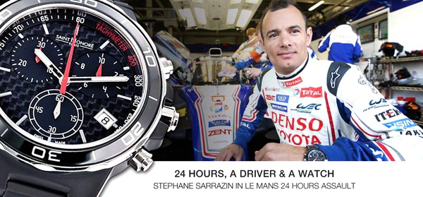 В июне часы тестировал Stephane Sarrazin, посланник марки. Stephane Sarrazin – автогонщик, участник известной во всем мире гонки на выносливость Le Mans 24-Hour – на этот раз занял второе место. Вместе с часами Saint Honore Worldcode Chronograph и их общим девизом: On the road to victory! (На пути к победе!)