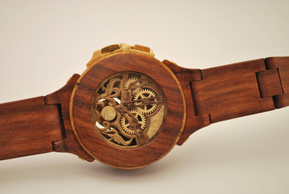 Скелетонизированные часы из берёзы и ореха, завода хватает на сутки.