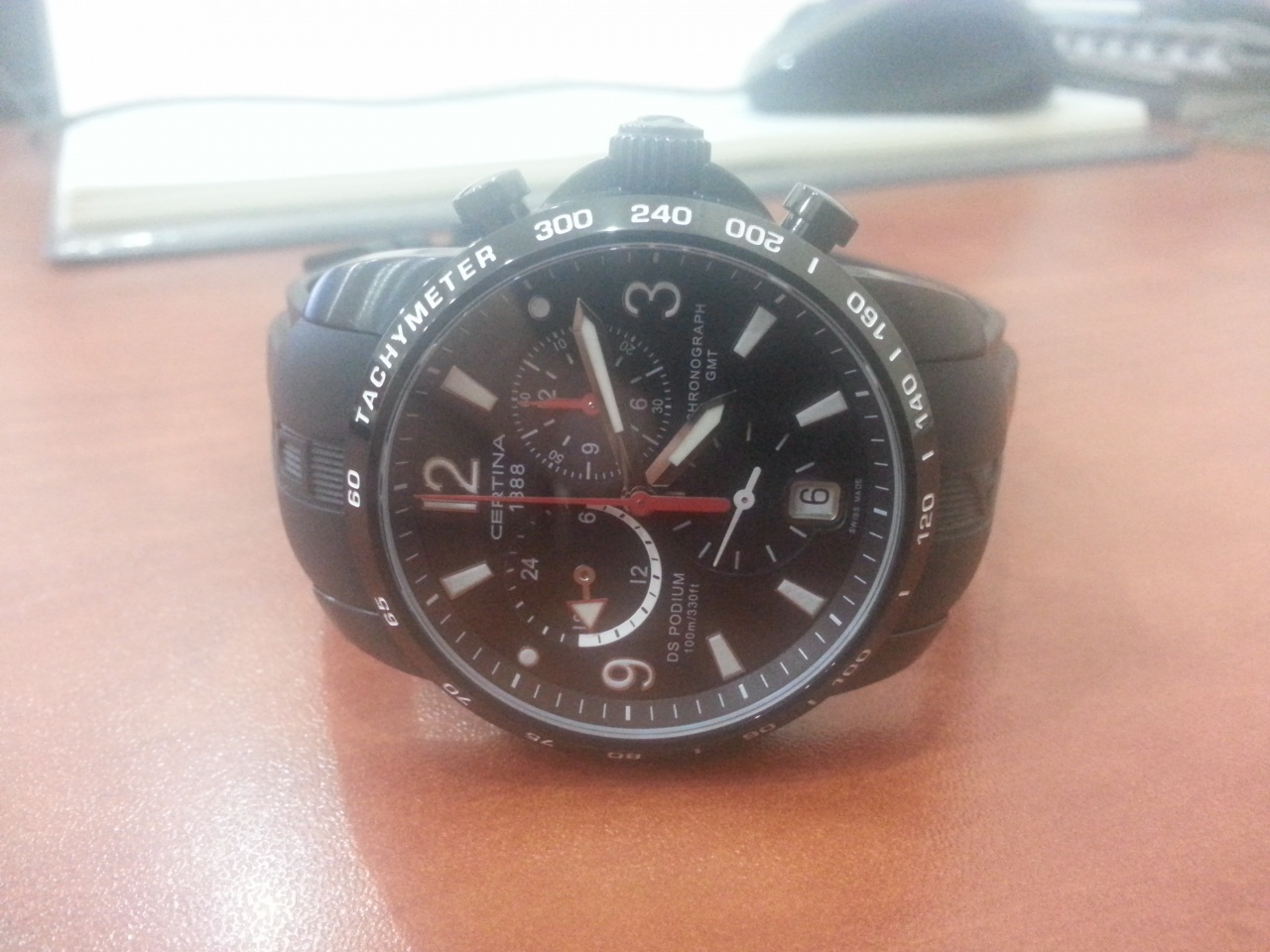 Свои брал в Будапеште. Эта модель стоила 177 000 форинтов (курс 1 евро =290 форинтов) что делает 610 евро. На следующий день не удержался и приобрел еще 2 модели из той же серии DS PODIUM GMT по 174 000. Причем одна из этих почти идентична сфотографированной лишь с той разницей что цифры 9,12,3 на циферблате, надпись tachymeter ярко красного цвета и ремешок другой. Вот она http://www.certina.com/ru/collection...podium-gmt#m=2. А другая модель абсолютно другая Скорее под костюм http://www.certina.com/ru/collection...podium-gmt#m=5. Итого 3 штуки. На все модели дали скидку 10% + tax free в аэропорту (240 евро). С вычетом всего потратил 1320 евро. Для меня это заметная сумма, но ни секунды о потраченных деньгах не жалею. Чуть позже сфоткаю другие две модели. До этого носил Seiko Sportura, есть еще Seiko Premier и Casio Edifice. Все очень хорошие часы, грех жаловаться. Но каких то особых эмоций не вызывали. А Certina действительно цепляет.