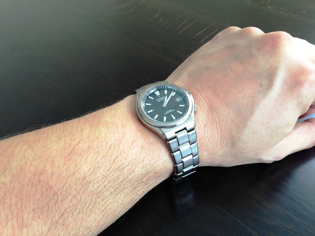 А после началось более близкое знакомство, эко-драйв, хороший люм, секундная стрелка, точно попадающая в деления и танцующая по циферу каждую ночь при радиосинхронизации.