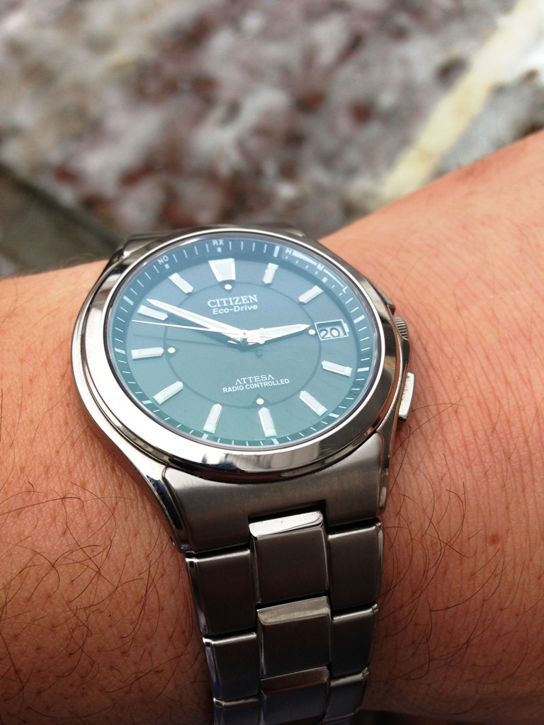 А после началось более близкое знакомство, эко-драйв, хороший люм, секундная стрелка, точно попадающая в деления и танцующая по циферу каждую ночь при радиосинхронизации.