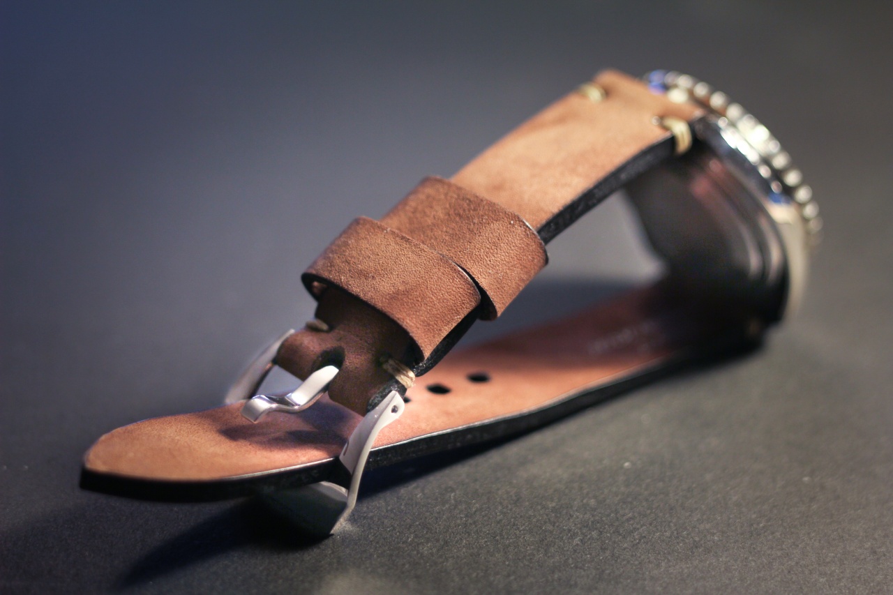 Мне почему-то кажется что сюда лучше подошел бы черный ремень, т.к. коричневый сильно уменьшает "изюменку" ваших часов - оранжевый безель...