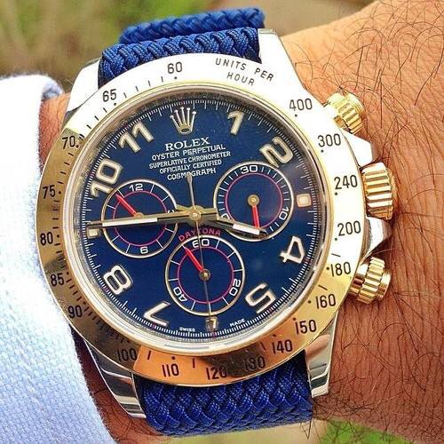 Если хочется отдохнуть от браслета, то к Вашему биколору отлично подойдут ремешки Perlon синего цвета.