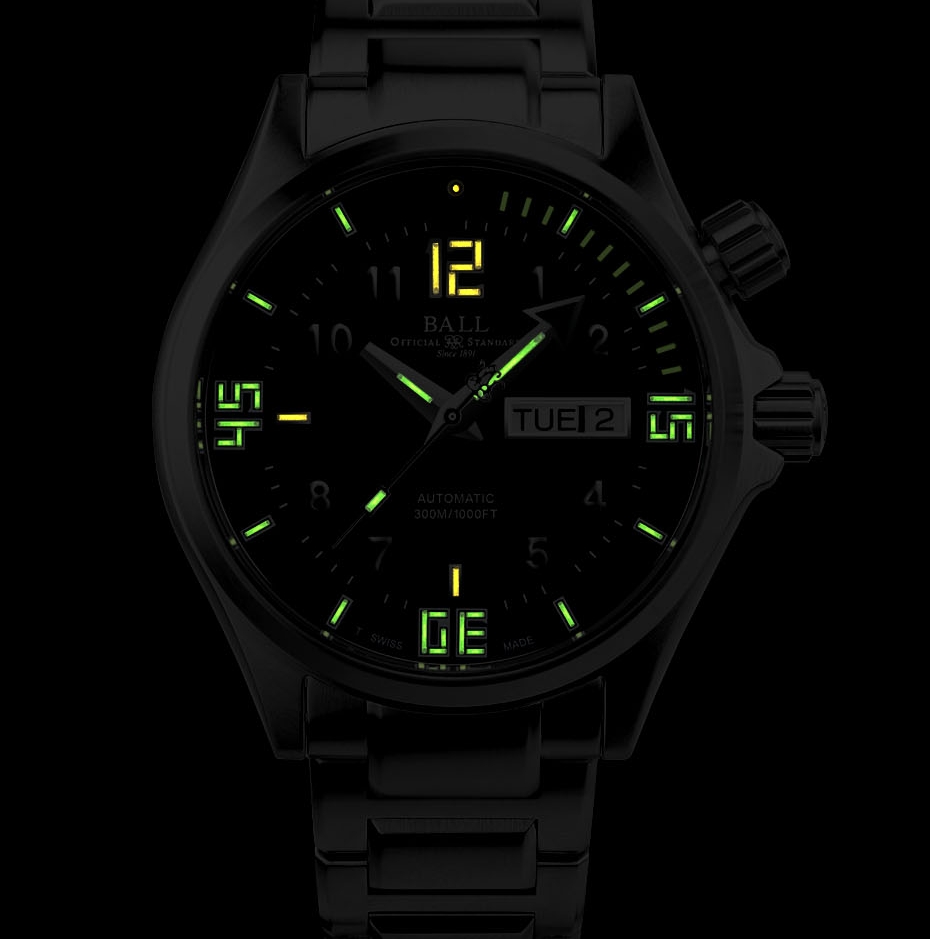 Ball эксклюзивно использует GTLS, сертифицированную для военного использования. Ball Engineer Master II Diver имеют не менее 42 отдельных микро газовых трубок, что делает их самыми легкочитаемыми в темноте и функциональными часами. Вам никогда не придется беспокоиться о видимости часов, пока Вы исследуете глубины океана. Даже на внутреннем вращающемся безеле использованы тритиевые трубки для подводного плавания в темных условиях. Гарантированный срок службы системы тритиевой подсветки составляет 25 лет. Если вы надеетесь, что Ваши часы прослужат дольше, не волнуйтесь: согласно сообщению на официальном форуме Ball, замена газовых микротрубок предлагается в качестве опции регулярного технического обслуживания.