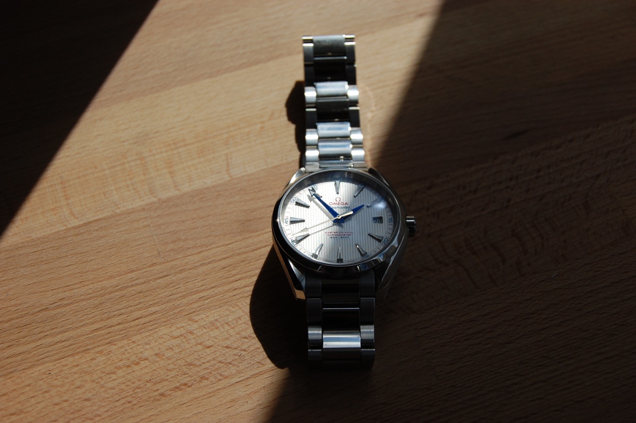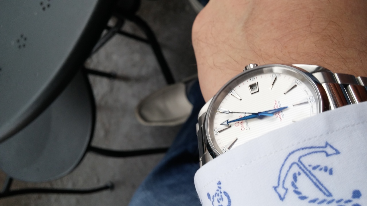 Изначально хотел Planet Ocean с оранжевыми метками на браслете, но когда увидел новую версию AT с золотой стрелкой синими переливающимися стрелками, да красными метками, плюс еще антимагнитную, решил брать её.
