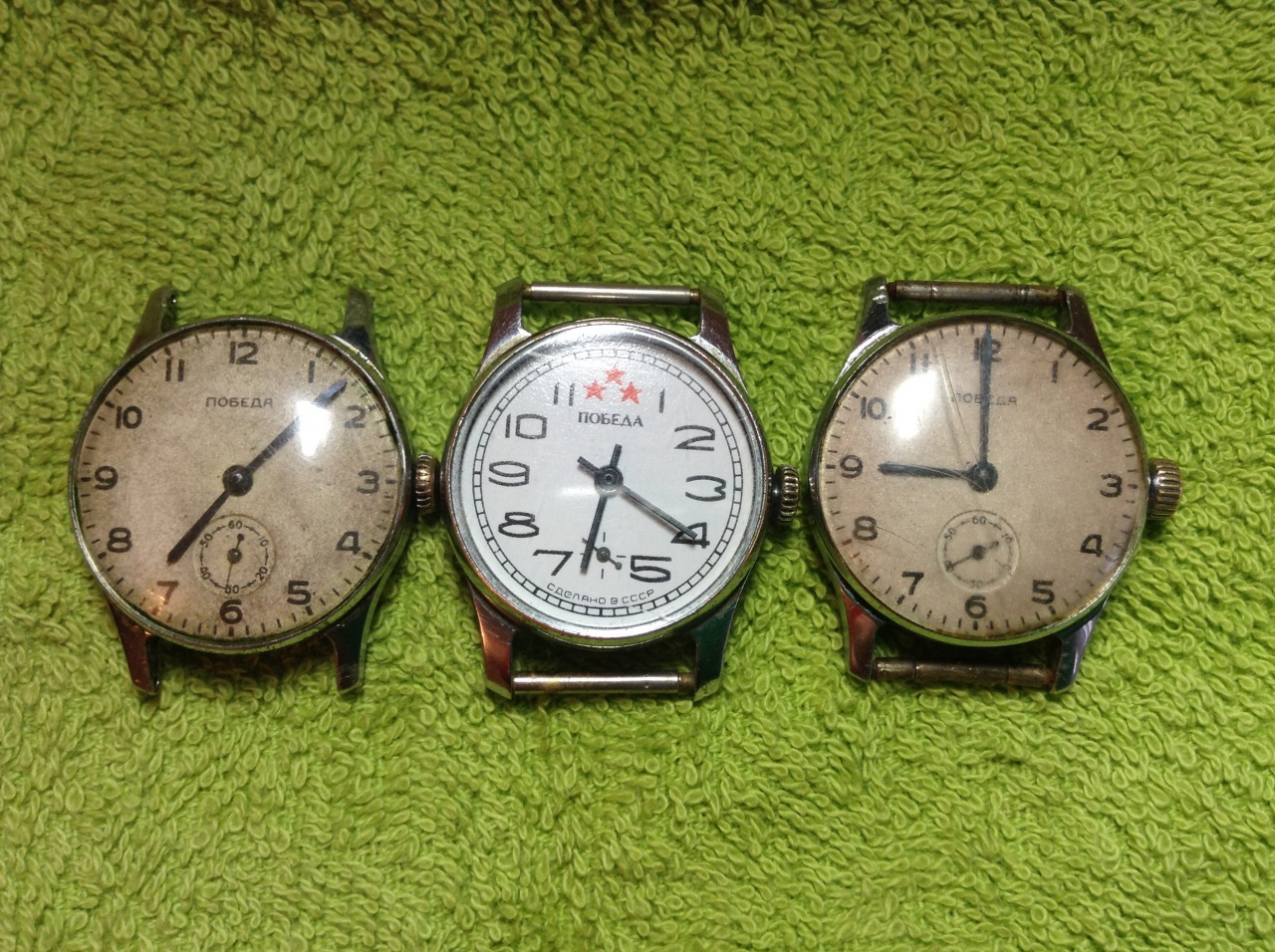 Здравствуйте, друзья! Осилил всю тему. Ограмотнился значительно, за что Вам очень благодарен! У меня имеются три Победки и огромное желание восстановить одну из них. Корпус имеется возможность попробовать очистить и заново хромировать в гальванической ванне. Со стеклом вопросов также не должно возникнуть. Но вот, почитав настоящую тему, заморочился на оригинальности восстанавливаемого экземпляра! Поэтому хотел бы Вас попросить дать экспертное заключение по имеющимся у меня часам, касательно их "котлетности"! Благодарю Вас!