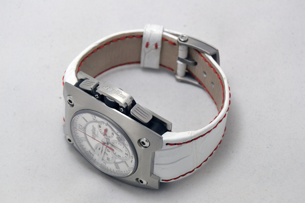 Часы были в личном пользовании ~3 месяца. Состояние новых. На часах установлен изготовленный под заказ белый крокодиловый ремень. В комплекте коробка и 2 белых оригинальных каучуковых ремня (размеры S (носился 1 раз) и M (не носился)).