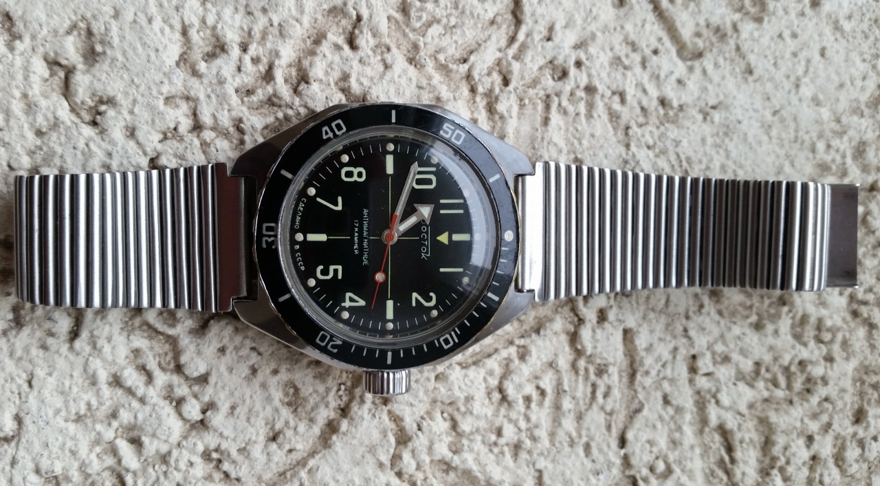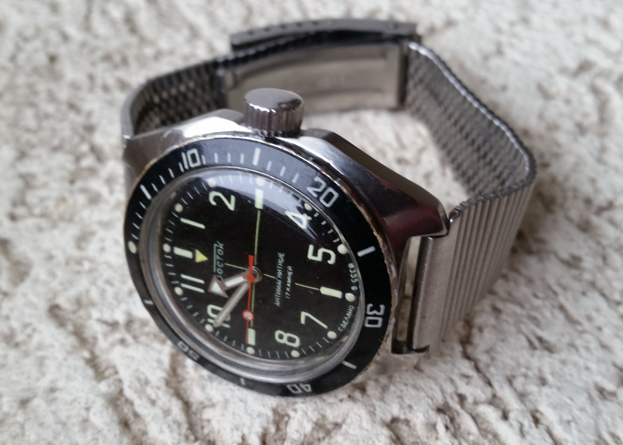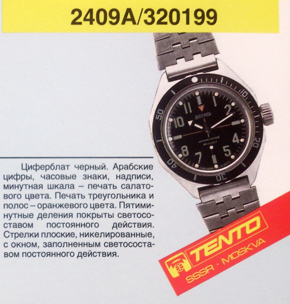 Есть в каталоге 90-хх годов. Обычная амфибия, СССР, корпус- нержавеющая сталь,внутри 2409А.В любом случае- хорошие часы, надежные и неубиваемые при правильном обслуживании. Итог- обслужить, отполировать стекло, заменить безель и люм на стрелках- и радоваться часам. Если плавать- нырять- нужно еще уплотнители( резиновые прокладки проверить)
