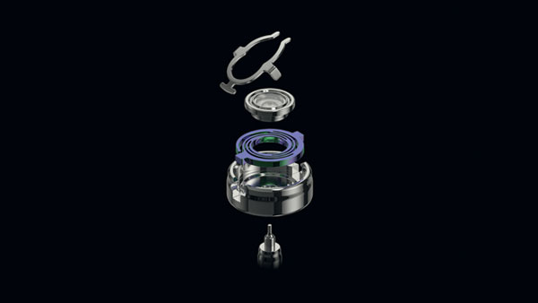 Революционная система Dual Ulysse лишена традиционного колеса баланса и анкерной вилки. Вместо них энергией баланс снабжают два импульсных кремниевых колеса, каждое из которых имеет по 18 рабочих зубьев, что обеспечивает более стабильное распределение энергии. Конструкция не требует смазки и поставляет энергию в направлении движения баланса, минимизируя трение.