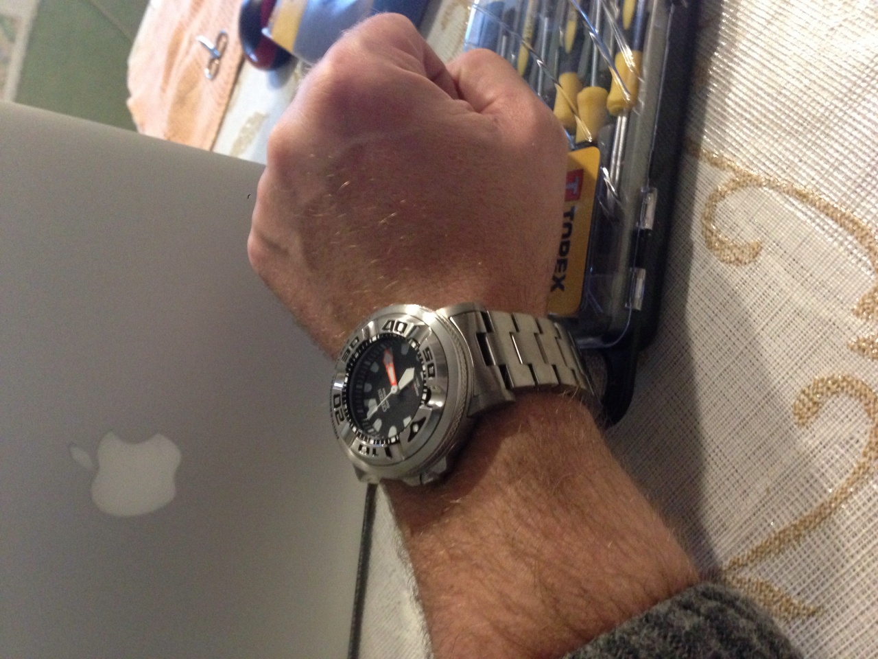 Citizen: EcoZilla Ti, JY8020-52E; Maurice Lacroix PT6058, Casio: Sea-Pathfinder SPF-60, Frogman GF-8230, Frogman GW-200Z, Frogman GW-225C, Frogman GW-200MS, GW-5000, Manaslu PRX-2000T Были: Casio King GXW-56, Seiko Sumo, MTG-S1000D