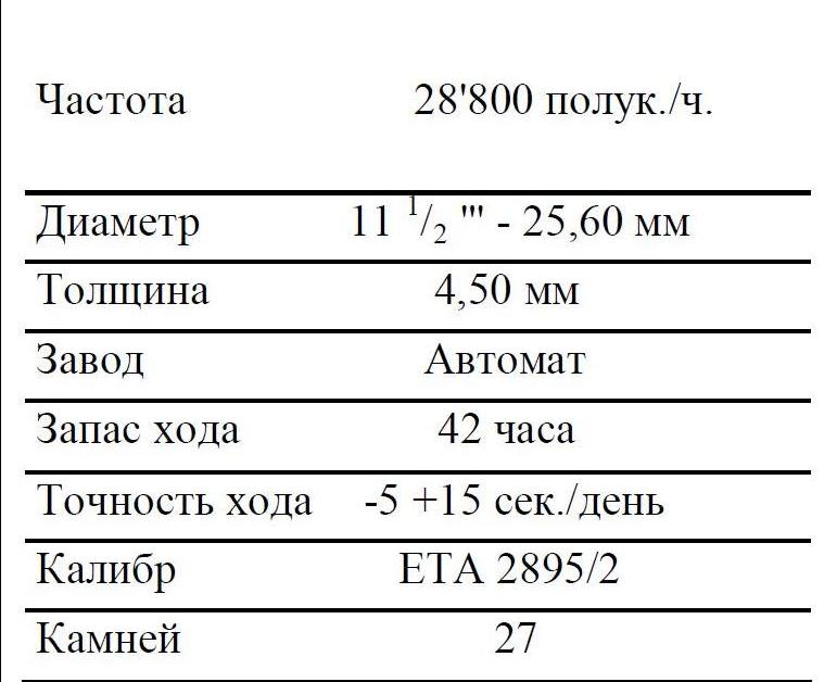Механизм: Механический с автоподзаводом (калибр 2895-2)