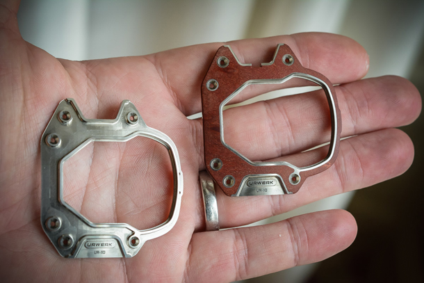 Модели Urwerk UR-110 серии ‘Torpedo’ всегда были достойными произведениями инженерной промышленности с их дополнительными усложнениями и совершенно необычными формами. По ним не скажешь, что они простые в использовании – это все-таки самая экстремальная коллекция бренда. Запущенные в 2011 году, первые модели получили приз за лучший дизайн на Grand Prix d’Horlogerie в Женеве и с тех пор выпускались в разных вариациях: из титана, платины, красного золота и с черным покрытием DLC. Под занавес коллекции Фрай и Баумгартнер решили пойти другим путем и выпустить новую беспрецедентную модель с комбинацией материалов, соответствующим их личным вкусам: ценная древесина и дорогая ткань.