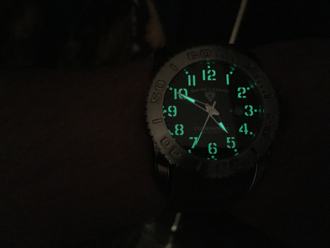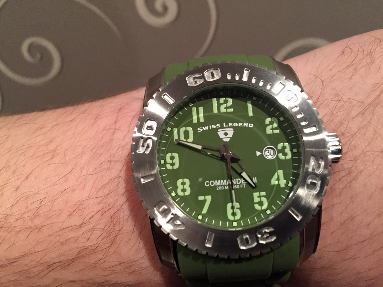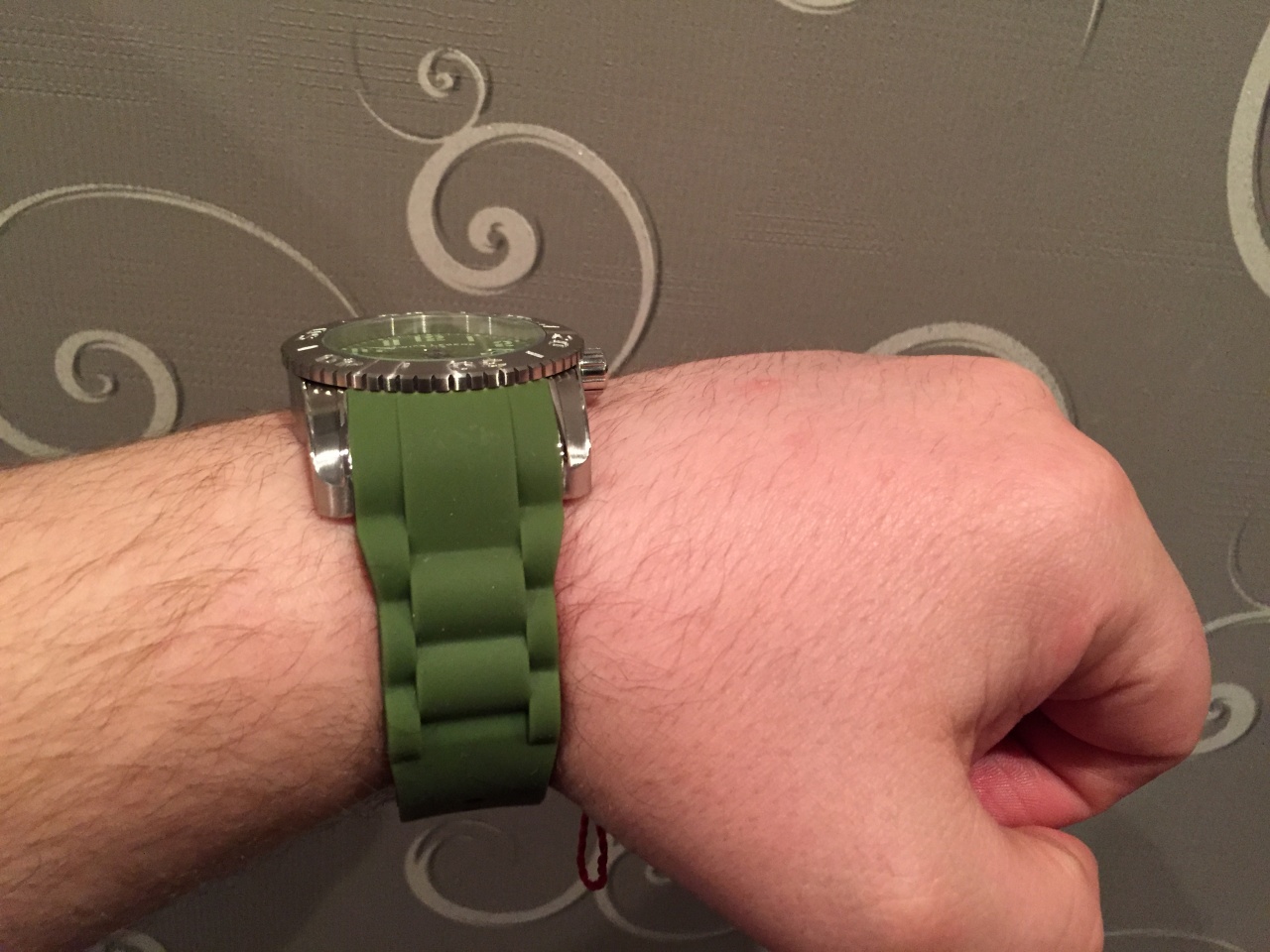 Очень красивый циферблат цвета green/matte, с яркими люми-метками и люми-стрелками.