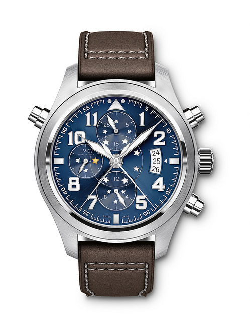 Амбициозное усложнение, первоначально использовавшееся в хронографах с секундной сплит-стрелкой, теперь представлено в специальной серии штурманских часов «Le Petit Prince». Двойной, или сплит-хронограф, – до сих пор не получившее должного признания часовое устройство с двумя секундными стрелками со стоп-функцией, расположенными друг над другом. С их помощью – параллельно и по очередности – можно измерять промежуточные временные интервалы в пределах одной минуты. Pilot’s Watch Double Chronograph Edition «Le Petit Prince» – это модель настоящих штурманских часов, которая удивительно гармонично объединяет в себе поэтический аспект и функциональные характеристики: автоподзавод, указатели времени, даты и дня недели в виде перемещающегося указателя звезды, малую секундную стрелку со стоп-функцией, хронограф для измерения отрезков времени продолжительностью до 12 часов, секундную сплит-стрелку, сапфировое стекло с двусторонним антибликовым покрытием, защищенное от перепадов давления, и, конечно, характерный для штурманских часов IWC внутренний корпус из мягкого железа для защиты от магнитных полей. Темно-синий циферблат подчеркивает спортивно-элегантный характер модели и оснащен стрелками и накладными метками с люминесцентным покрытием Super-LumiNova®*, что обеспечивает хорошую считываемость показаний даже в ночное время суток. Гравировка на задней крышке корпуса указывает на лимитированный тираж данной модели – 1000 экземпляров. Часы Pilot’s Watch Double Chronograph Edition «Le Petit Prince» дополнены матовым коричневым ремешком из телячьей кожи с бежевой прошивкой.