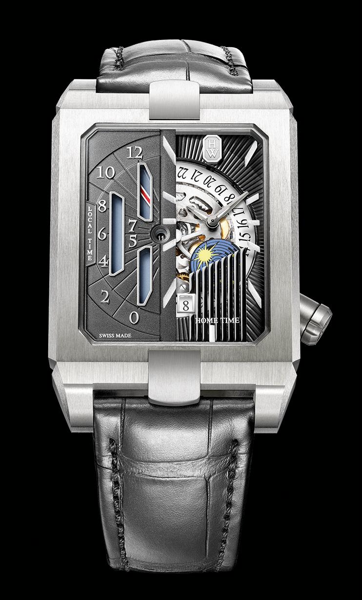 Новая модель Avenue Dual Time Automatic от швейцарского часового производителя Harry Winston отличается оригинальным дизайном циферблата, который поделен по вертикали на половины с двумя видами отделки и двумя