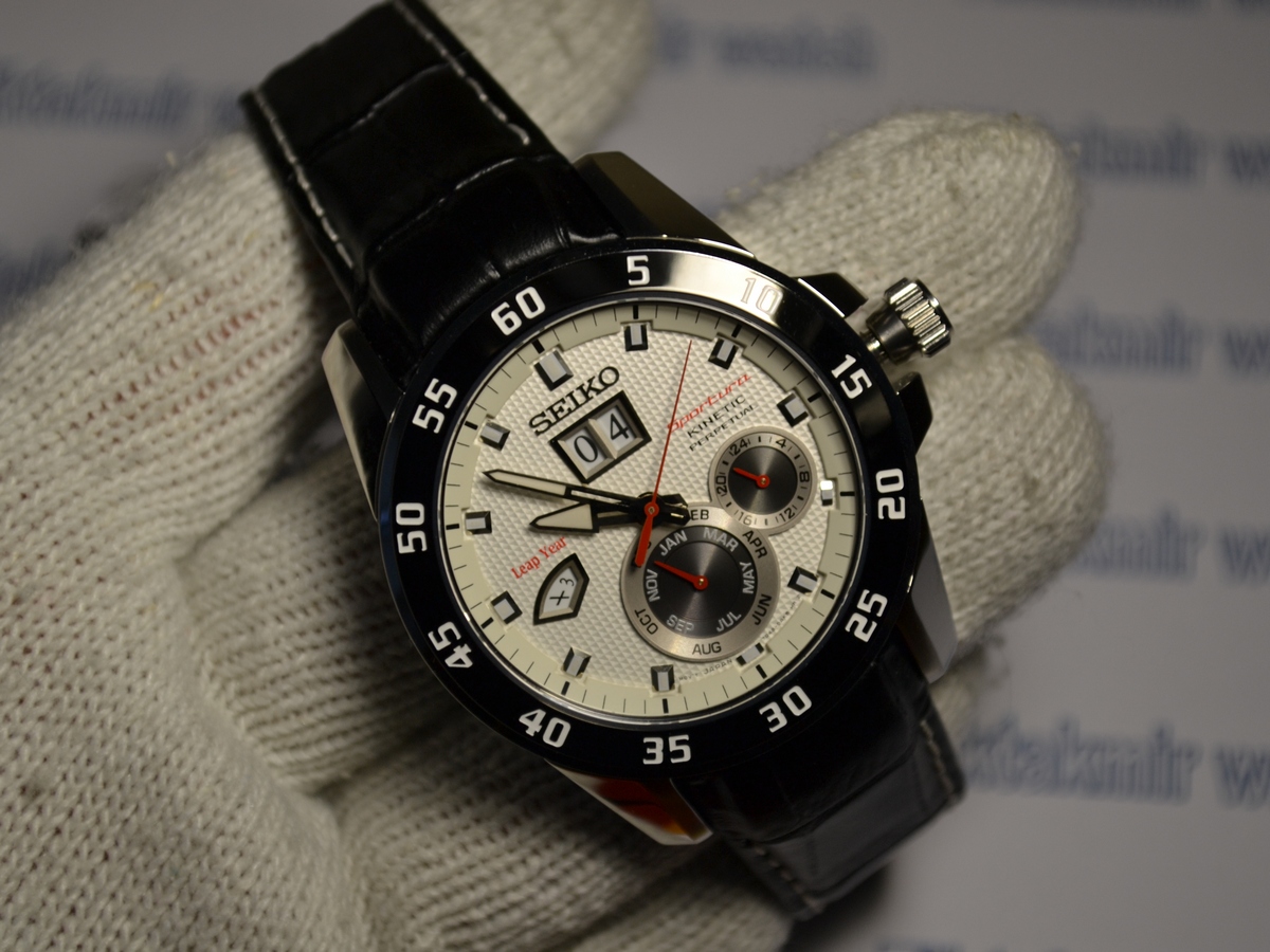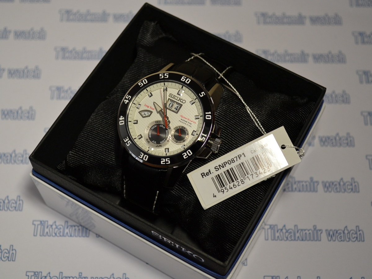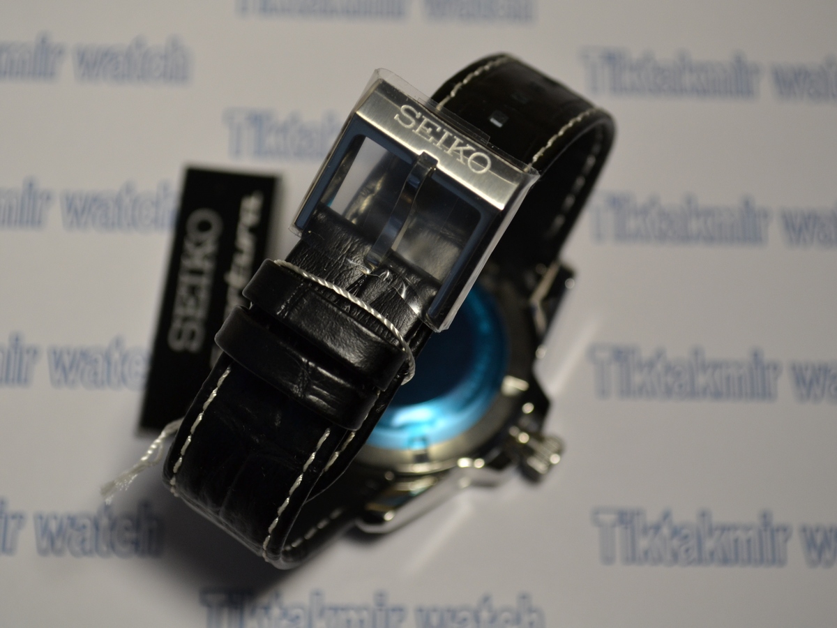 Корпус стальной, стекло сапфировое, ремень кожаный с фирменной баклей Seiko.