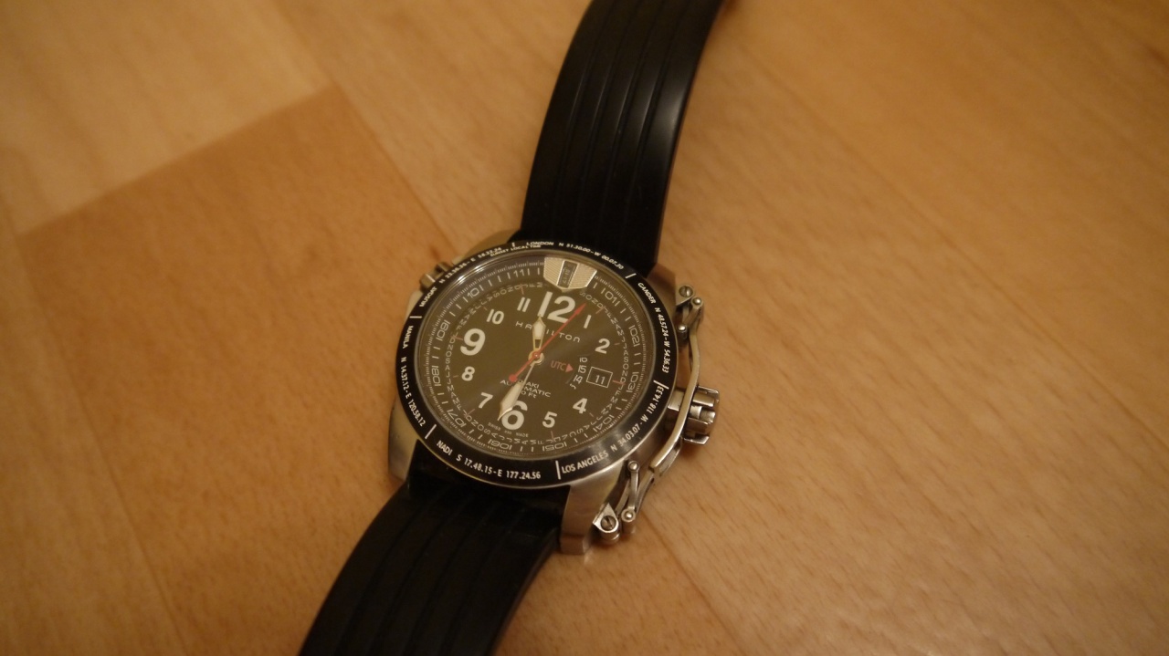 Оригинальные швейцарские механические часы Hamilton в отличном состоянии с 2 ремешками: отличный проверенный временем каучуковый и кастомный кожаный практически не ношенный с оригинальной баклей Hamilton.