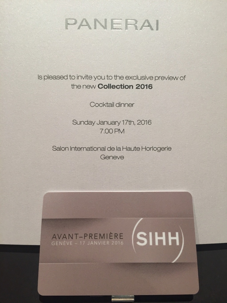 Не долго осталось до SIHH 2016 Geneva, panerai cocktail dinner 17 января.