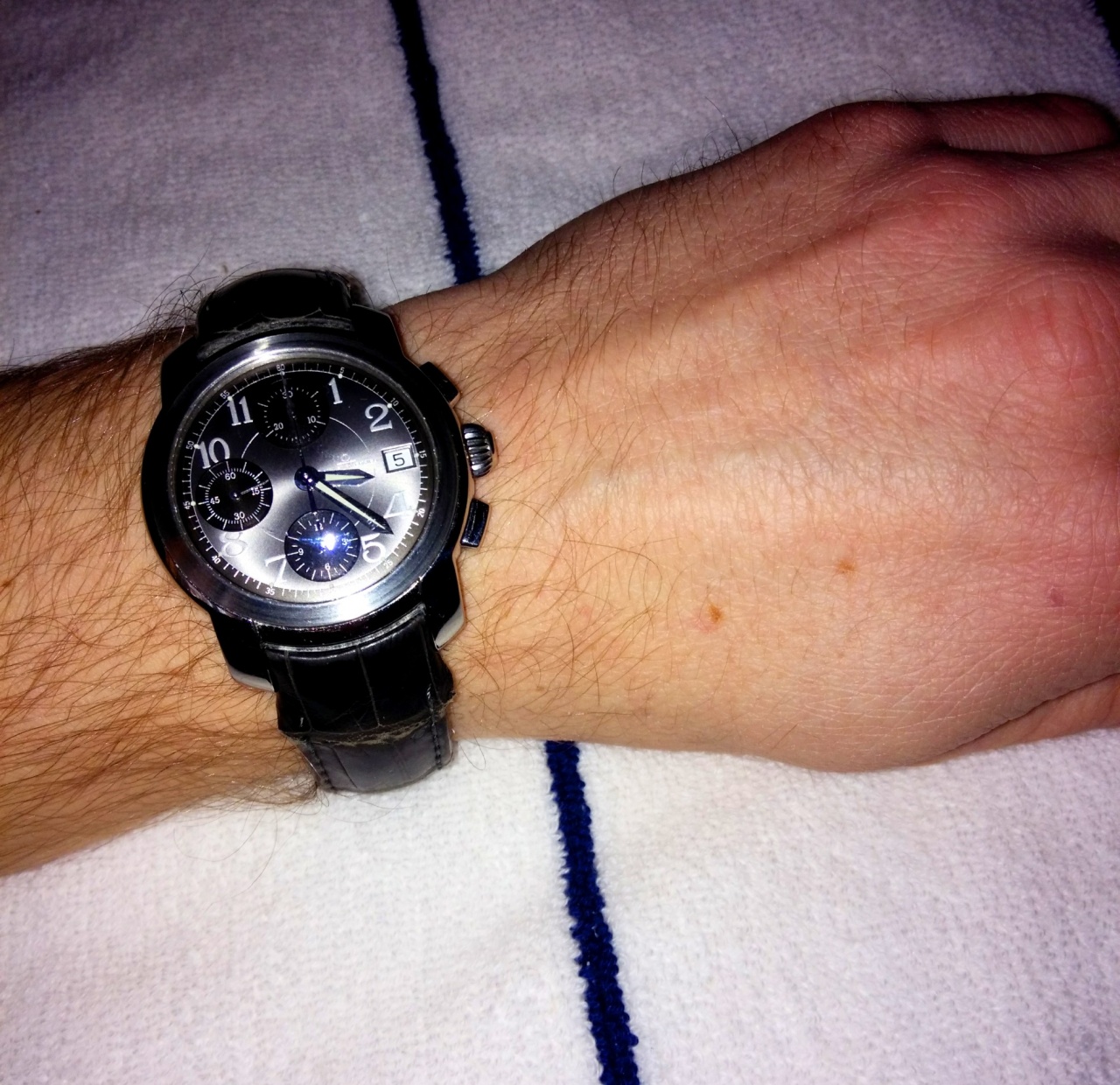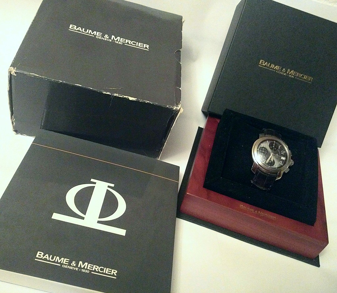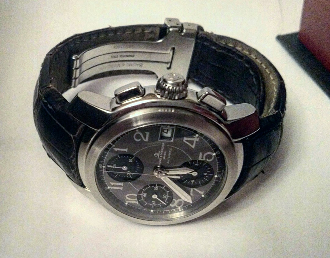 Продам мужские часы Baume & Mercier Capeland Chronograph, ref. MVO45216 , automatic, отличное состояние, без царапин и потертостей, циферблат цвета графит, очень красиво переливается и меняет цвет на свету, хронограф, диаметр 38 мм, ремень из кожи крокодила, но требует замены. В комплекте коробки и бумаги, куполообразное сапфировое стекло, находятся с Санкт-Петербурге