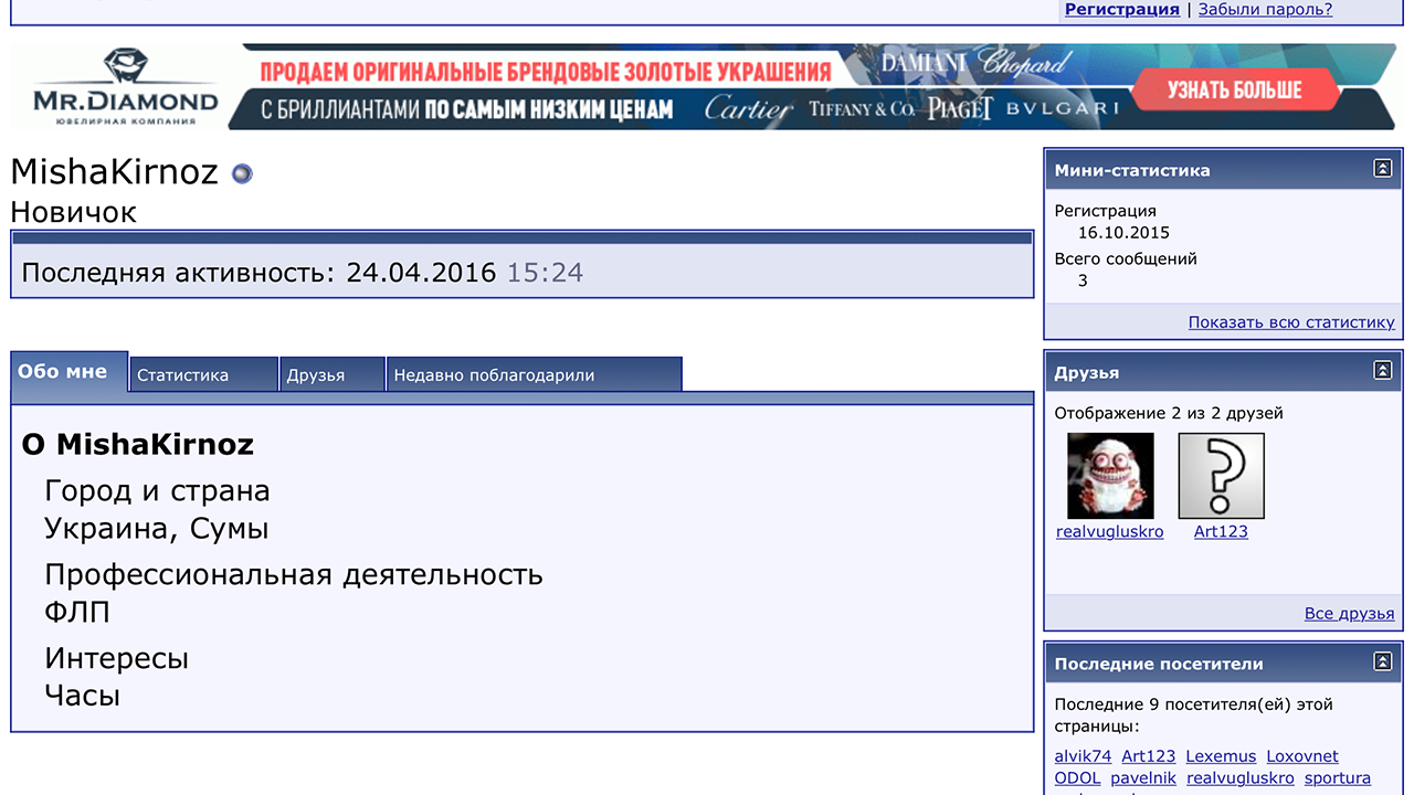 А в друзьях у Михаила мы видим Art123. Он же net2106 на аукро