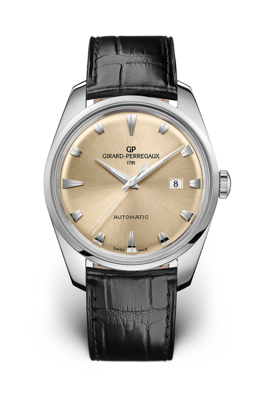 Отдавая дань почтения славному прошлому, мануфактура отметила собственный 225-летний юбилей классической моделью 1957. Стеклянная коробка, циферблат цвета шампанского с ретро-эффектом, мечевидные стрелки с люминофором и накладные часовые метки напоминают о богатом наследии Girard-Perregaux.