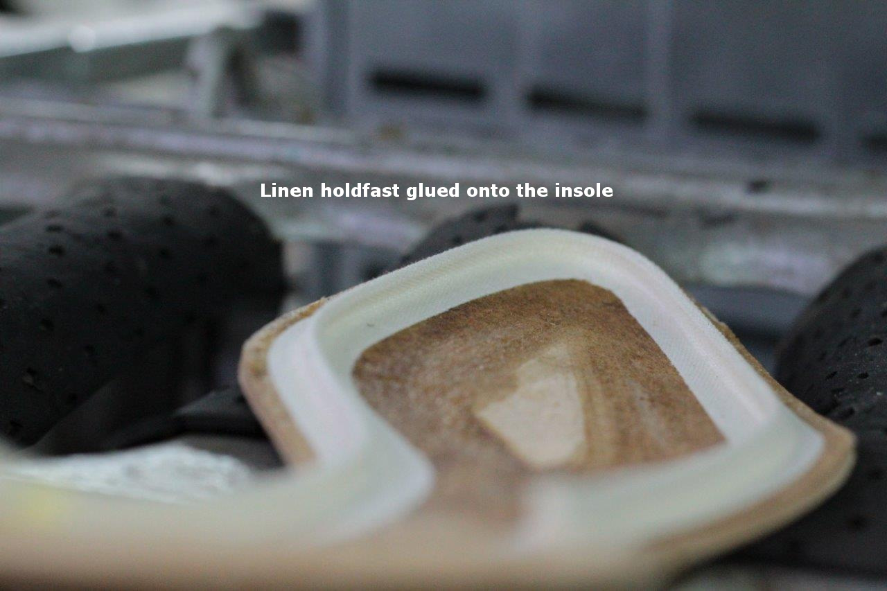 This holdfast is attached to the insole by glue. In a sense, the integrity of the shoe is based on the strength of the bond of the glue from the insole to the linen feather.