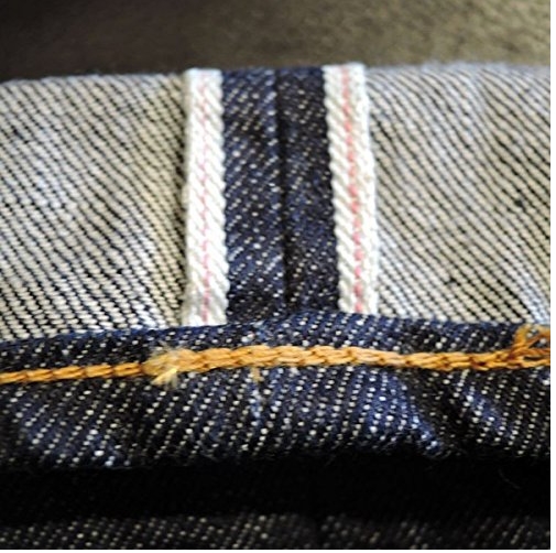 Джинсы подшиты цепным стежком, selvedge line имеет светло-розовый оттенок, что так же близко к старым джинсам.