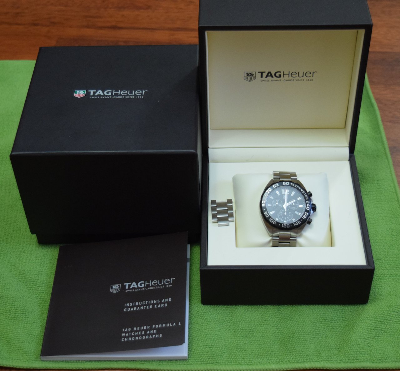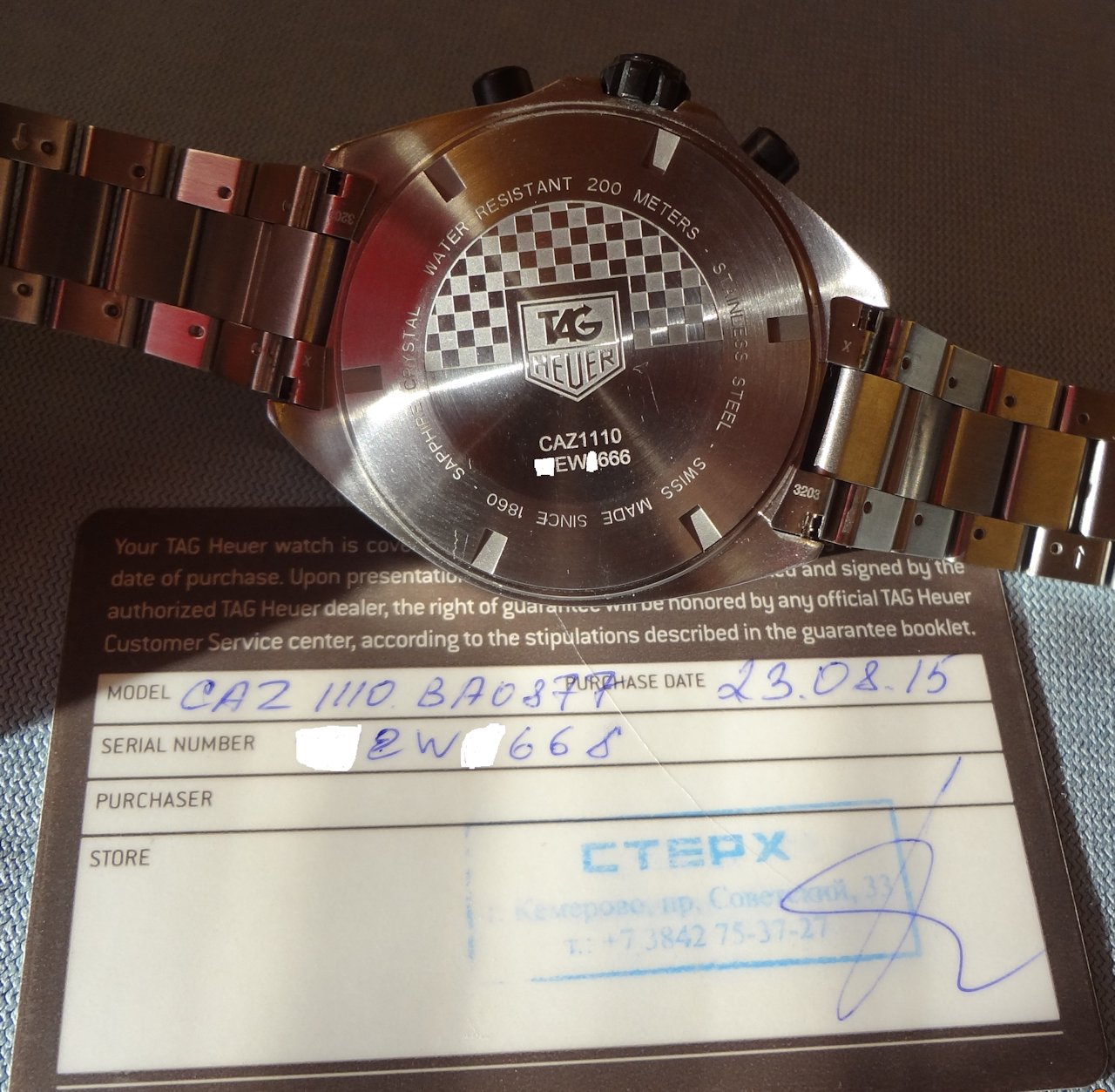 Продам отличные часы на каждый день, кварцевый хронограф Tag Heuer Formula 1 CAZ1110.BA0877. Куплены в августе 2015г. у оф. представителя марки в РФ. Комплект полный. Состояние, в целом отличное, на браслете практически не носились, по корпусу - достаточно заметны только следы на задней крышке и микроскопическая вмятинка на "0" цифры "70" безеля (на фото даже не видно).