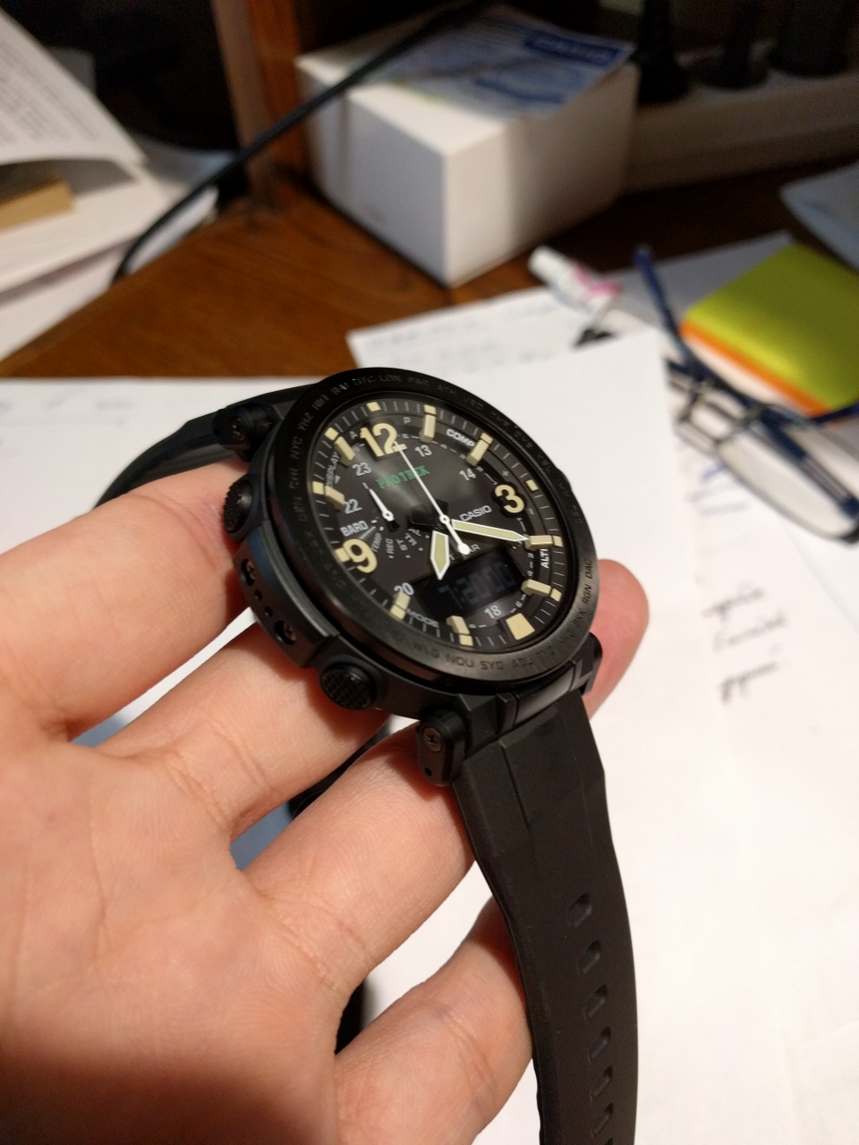 Citizen: EcoZilla Ti, JY8020-52E; Maurice Lacroix PT6058, Casio: Sea-Pathfinder SPF-60, Frogman GF-8230, Frogman GW-200Z, Frogman GW-225C, Frogman GW-200MS, GW-5000, Manaslu PRX-2000T Были: Casio King GXW-56, Seiko Sumo, MTG-S1000D