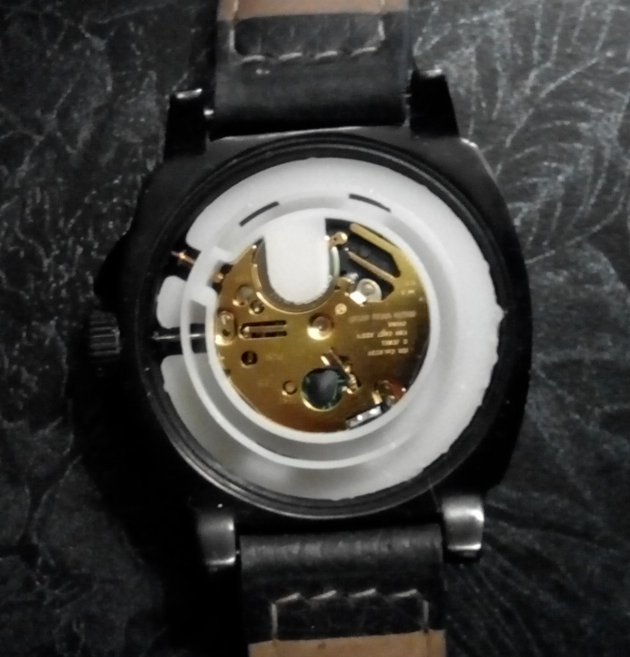 Перестали ходить часы Invicta, грешу на батарейку, поскольку ни ударов, ничего механического не было. Разобрал часы для замены батарейки, а ее держит вот такое пластиковое кольцо с заглушкой. Попытался вытащить, сидит крепко да еще и похоже заводную головку надо снимать.... иначе не выйдет.