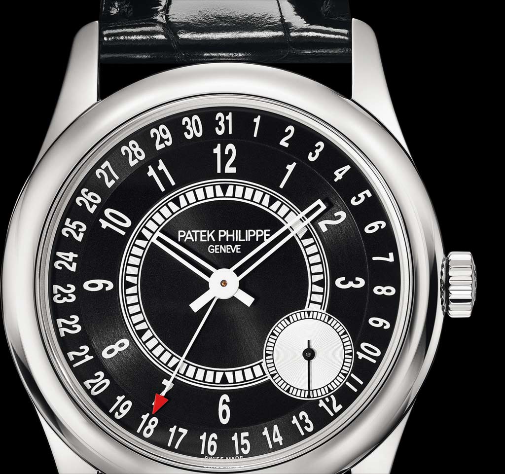 Новинка имеет круглый полированный корпус, изготовленный из 18-каратного белого золота, диаметром 39,0 мм. На торце рифленой заводной головки, расположенной на 3 часах, выгравировано изображение креста Calatrava - эмблемы бренда Patek Philippe. Сапфировое стекло установлено на передней стороне часового корпуса (с антибликовым покрытием) и на его задней крышке. Циферблат черный, с лучистой отделкой в его центральной части, гильошированным кругом с часовой разметкой и лучистой отделкой круга, размеченного датами. Часовая и минутная стрелки лакированные, серебристого цвета, скелетонизированные. Модель оснащена мануфактурным швейцарским ультра-тонким автоматическим механизмом 240 PS C, с балансовой частотой 21600 полуколебаний в час (3 гц), децентрализованным микро-ротором автоподзавода из 22-каратного золота, 48-часовым запасом хода, функциями индикации часов, минут (посредством соответствующих центральных стрелок), секунд (на соответствующем малом боковом циферблате, расположенном между 4 и 5 часами) и даты (посредством специальной центральной стрелки с контрастным красным наконечником на периферийной круглой шкале, размеченной арабскими цифрами).