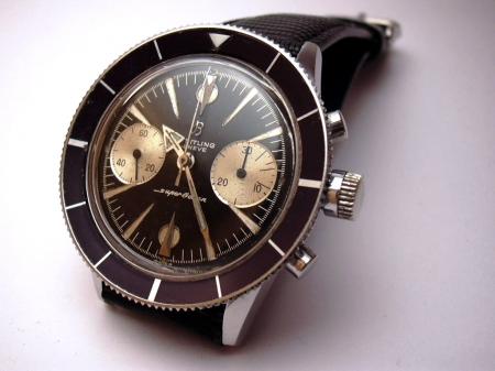 История Breitling Superocean начинается в 1957 году, когда был представлен первый образец этой модели. Модель имела водозащиту 200 метров. Размер корпуса 36 мм. Модель была в виде трехстрелочного автоматического дайвера – реф 1004, а также хронографа, реф 807, собранного на калибре Venus 150. Модели имели все уже привычные черты дайвера – люм, хорошо читаемые стрелки, вращающийся безель.