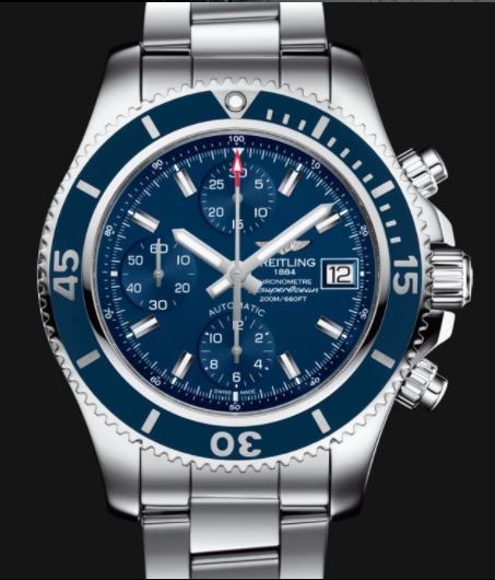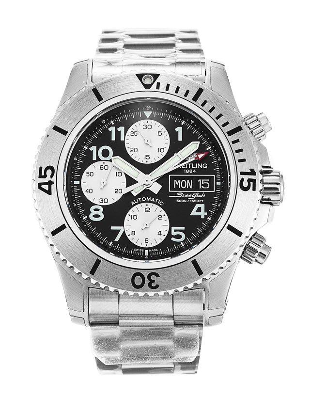 "Matching the specifications of the U.S. Navy's combat swimmers, the SEALS, the COLT SUPEROCEAN was designed as a truly professional diver's watch. The COLT SUPEROCEAN features the strongest, most rugged watchcase ever designed by Breitling; its steel back is 3mm thick while its 3.7mm-thick crystal can withstand pressures equivalent to one ton."