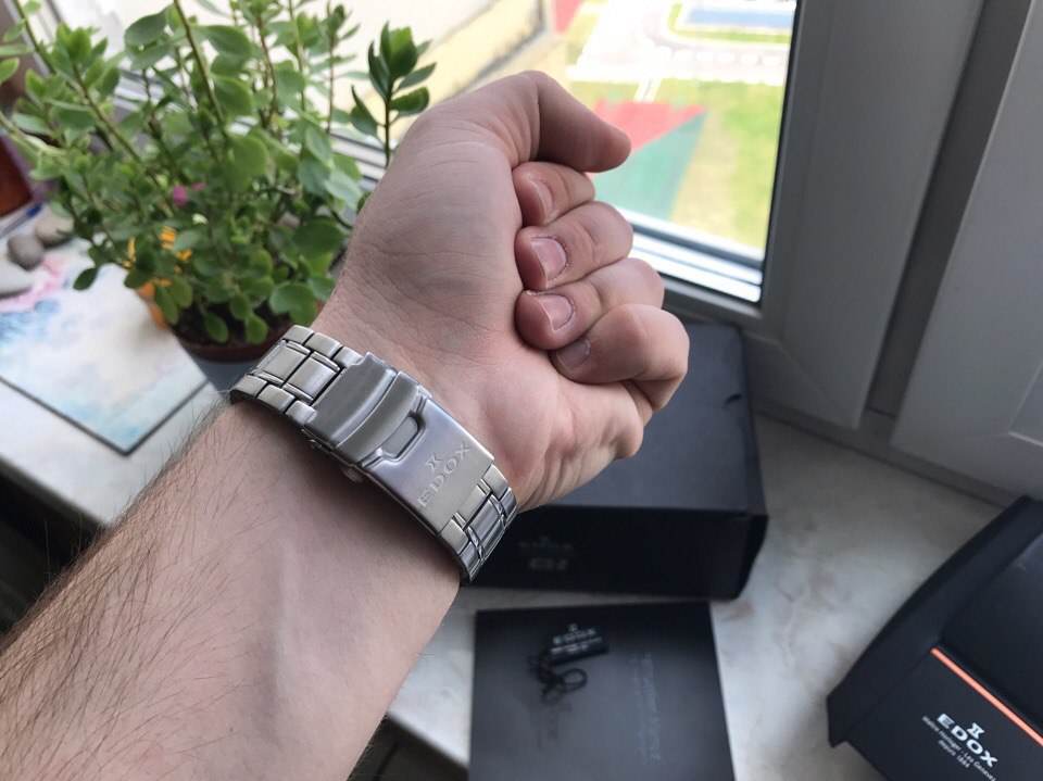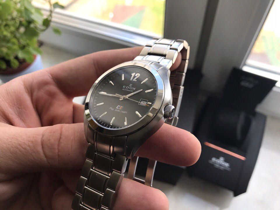 Классный вариант надежной швейцарской механики с высокой водозащитой от именитого бренда за скромные деньги. Отличные часы на каждый день, очень удобно и органично сидят на запястье. По стилистике сочетаются с любым гардеробом, будь то костюм или же шорты с поло. Состояние практически идеал, полнейший комплект.