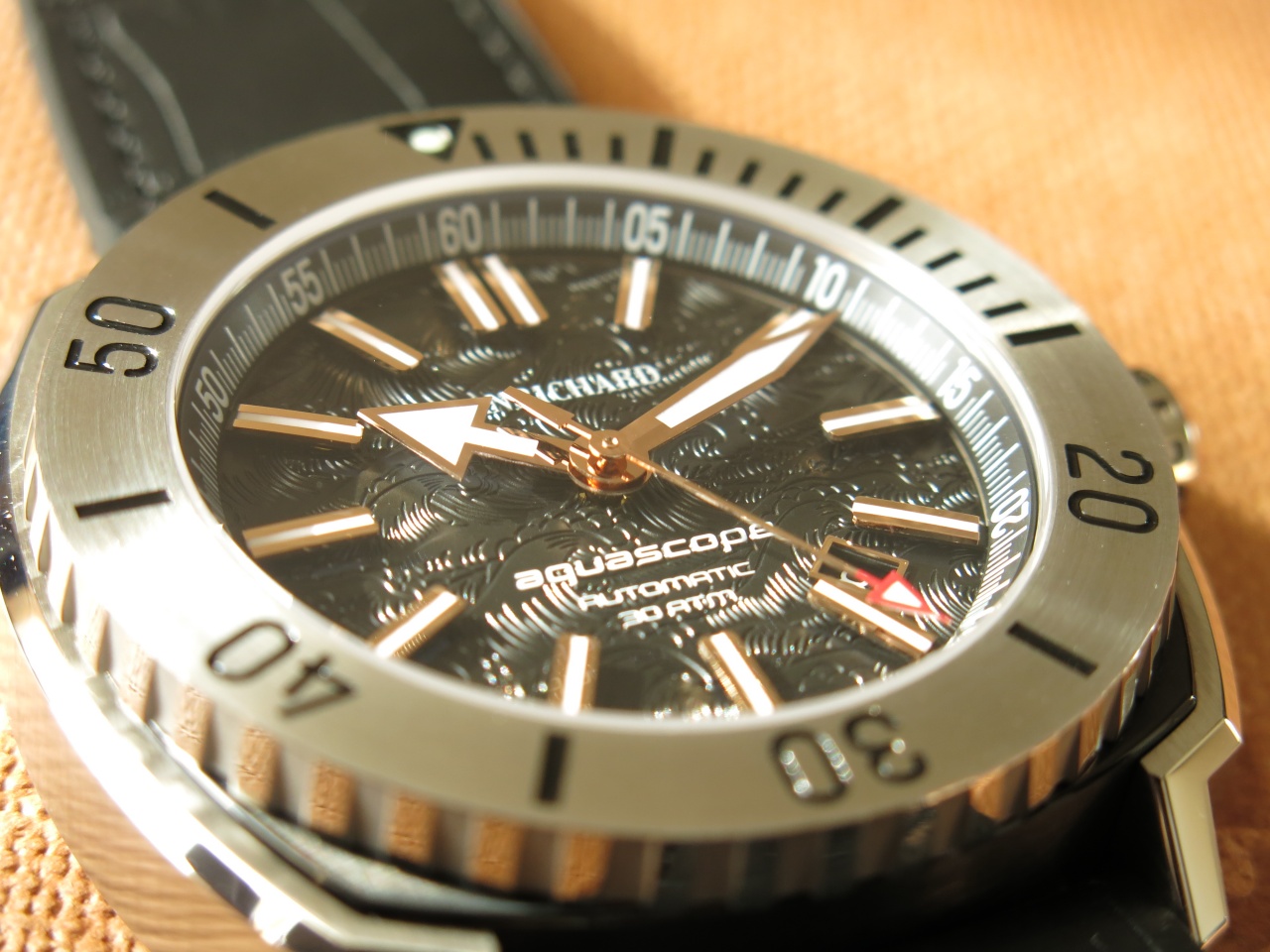 Безель дайверский, с разметкой, сатинированный, односторонний, с хорошо чувствующимися щелчками.