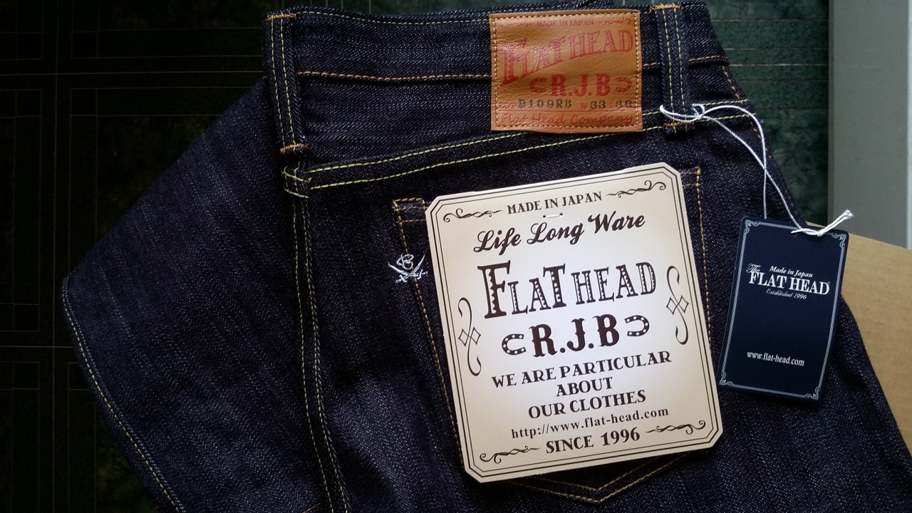 ..джинсы получил ещё месяц назад, но только вчера было время и настроение их усадить...за это время вероломный Михара умудрился снизить цену на эту модель ( вот уж от кого не ожидал такого "аттракциона неслыханной щедрости "),ну да я уже почти привык, что как только я покупаю какую нибудь позицию, через некоторое время она начинает дешеветь, или появляется какое-то спецпредложение - философски на это смотрю..Главное сами штаны - они прекрасны !! ..традиционная Флатхедовская фурнитура, патч опять же обычный для этой конторы..и деним : он оказался левосторонний - я как то этот момент упустил при изучении - с обычной для Флэтхед "полосатостью " ..по модели : весьма свободный верхний блок ( Михара как раз предупреждал ) и узкие штанины..сперва даже подумалось что сайздаун было бы лучше, но наверное всёж тогда в ногах тесноваты бы получились..в связи с этими факторами усаживал в горячей воде из под крана без примесей холодной - час в ванной + час замокали в тазике с периодическим добавлением кипятка из чайника...сегодня не утерпел - превозмогая неприятные ощущения влез в холодные сырые штаны - уж очень любопытно - результат : вроде именно то что хотелось ! Очень сильно сели в росте и бёдрах, а в ногах просто плотно и комфортно..очень похожи на skull 5507 и на fullcount 1109, вот только сильнее заужаются к низу...высохнут - забегу в "замерную "